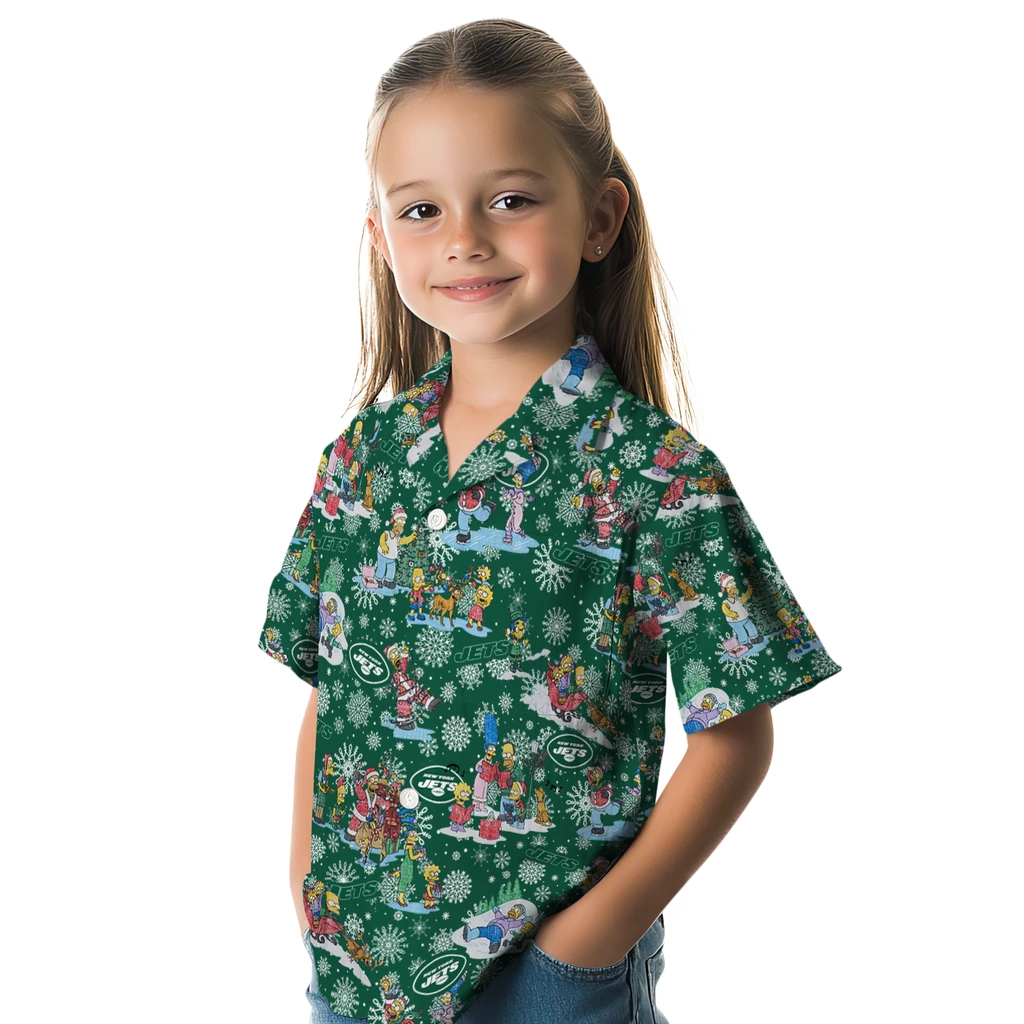 Show your New York Jets spirit in tropical style. Simpsons Christmas cartoon characters with team logo for a festive Hawaiian style. Available for men, women and kids. Great for matching looks.