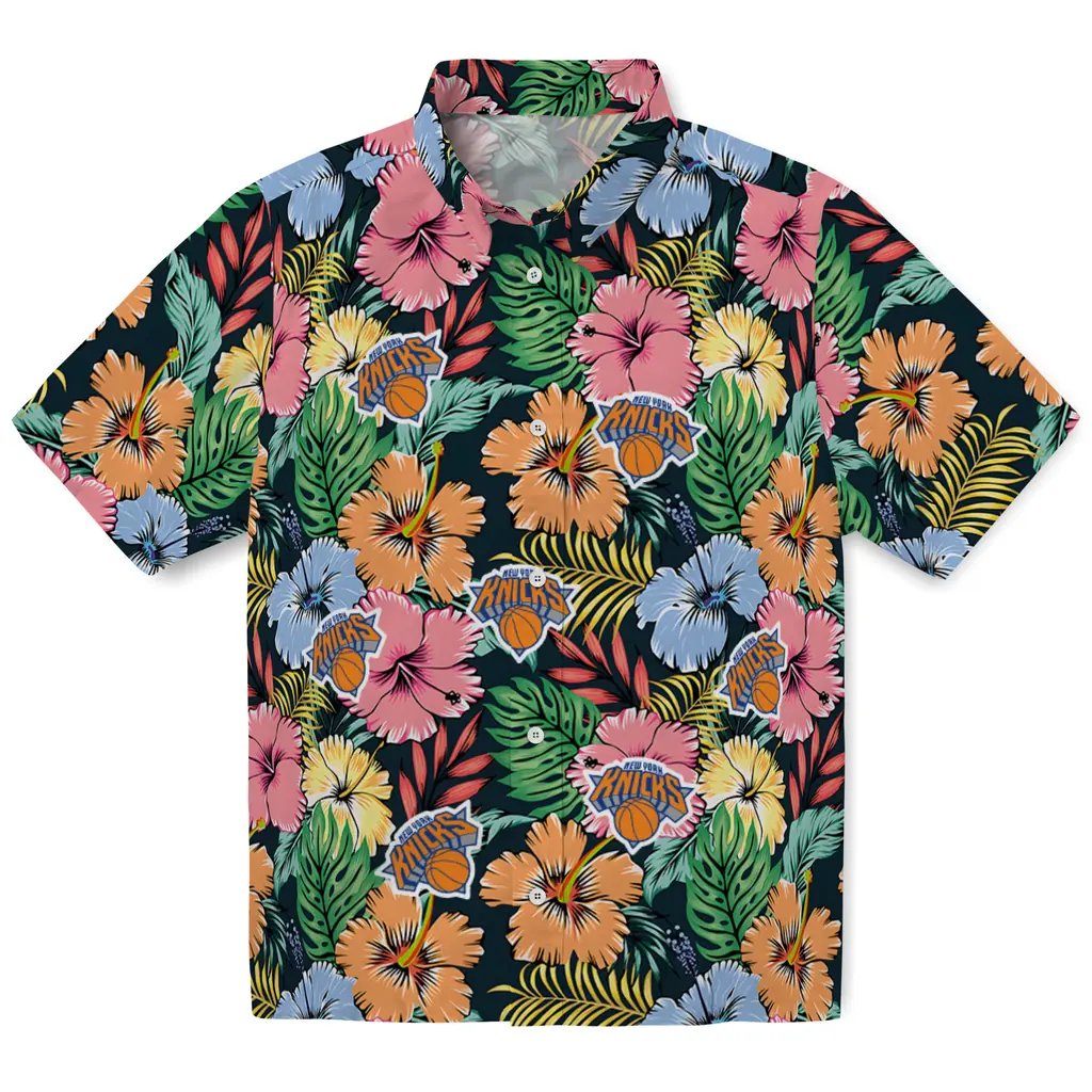 New York Knicks Hawaiian Shirt – Brilliant Hibiscus Garden