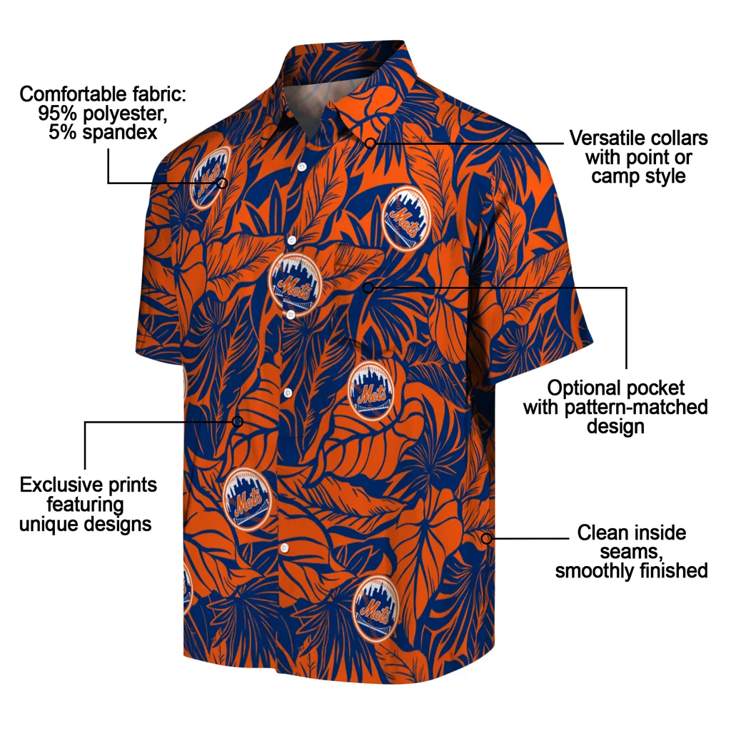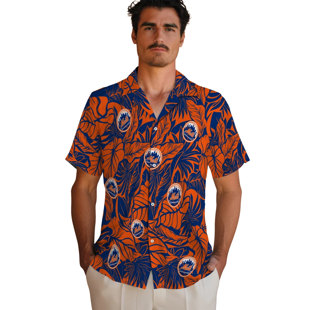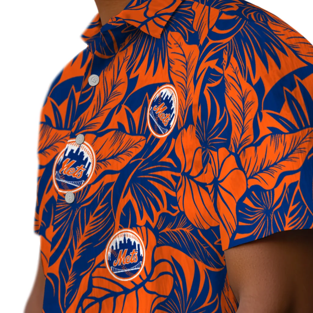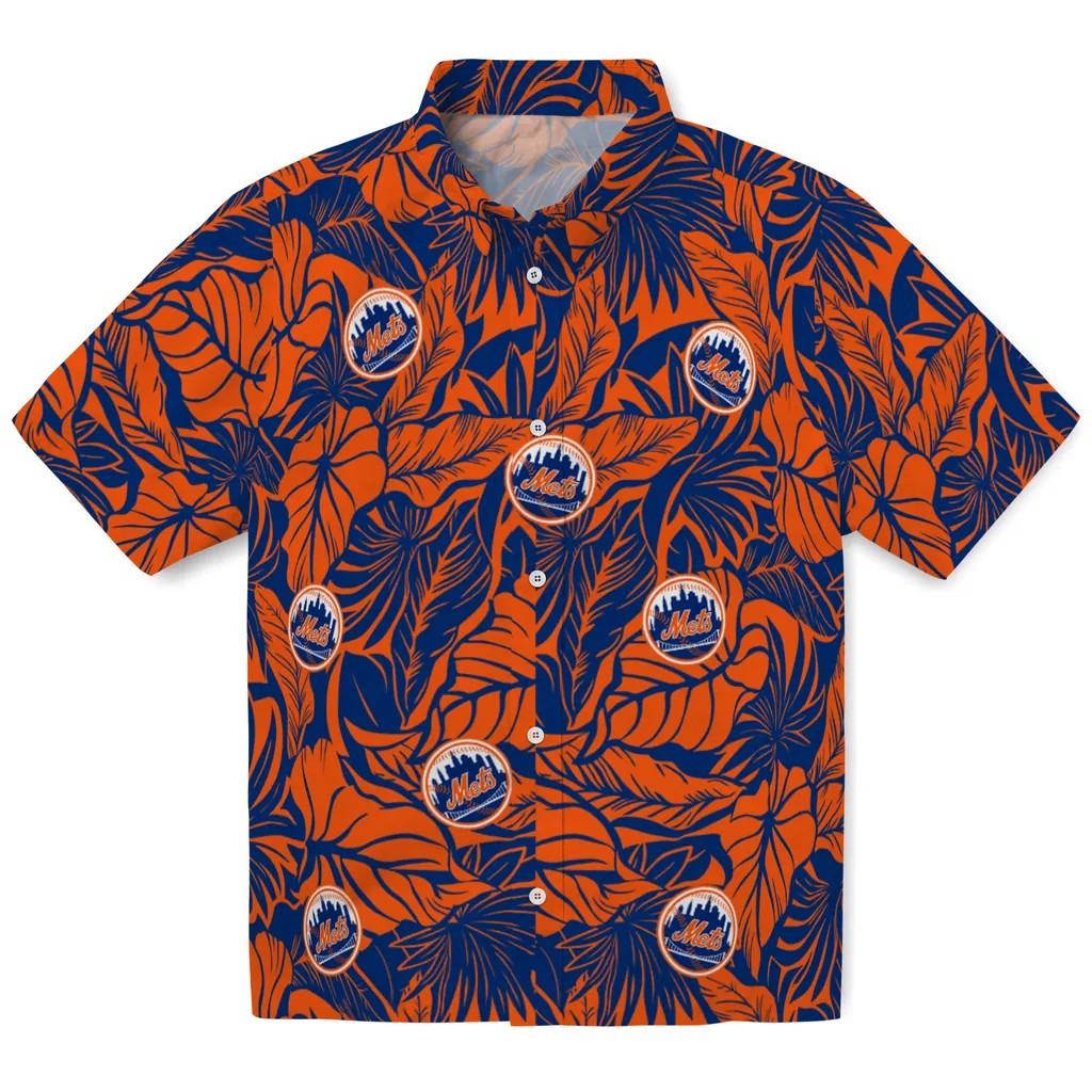 Show your New York Mets spirit in tropical style. Hibiscus tiki jungle design with tropical leaves, jungle, beach, and team logo for a bold style. Available for men, women and kids. Great for matching looks.