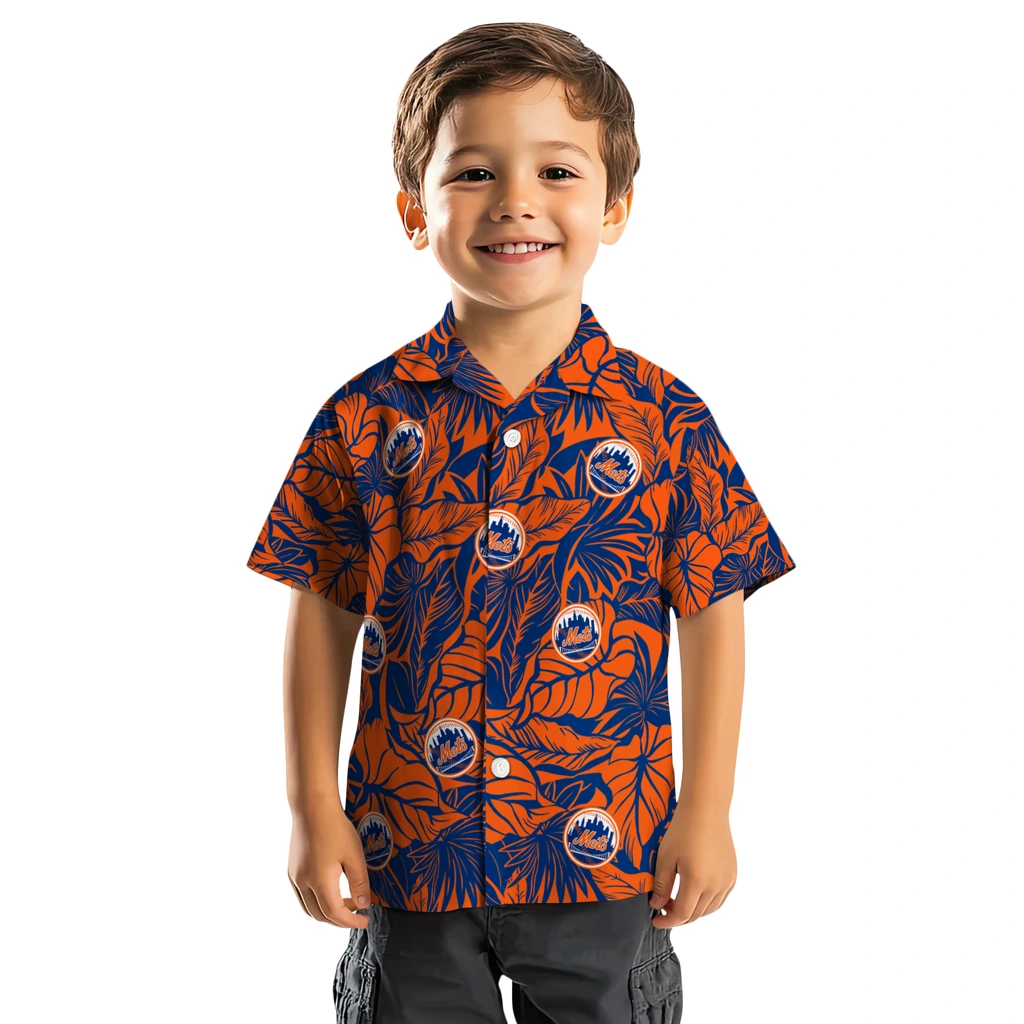 Show your New York Mets spirit in tropical style. Layered monstera leaves with tropical foliage accented with team logo. Available for men, women and kids. Great for matching looks.