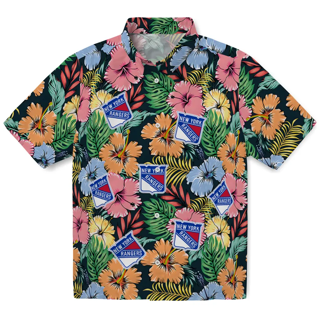 New York Rangers Hawaiian Shirt – Brilliant Hibiscus Garden