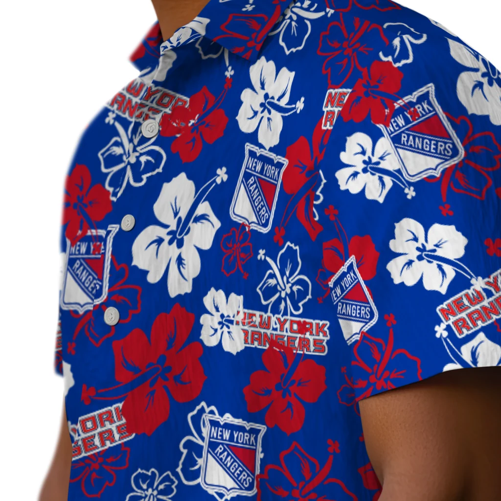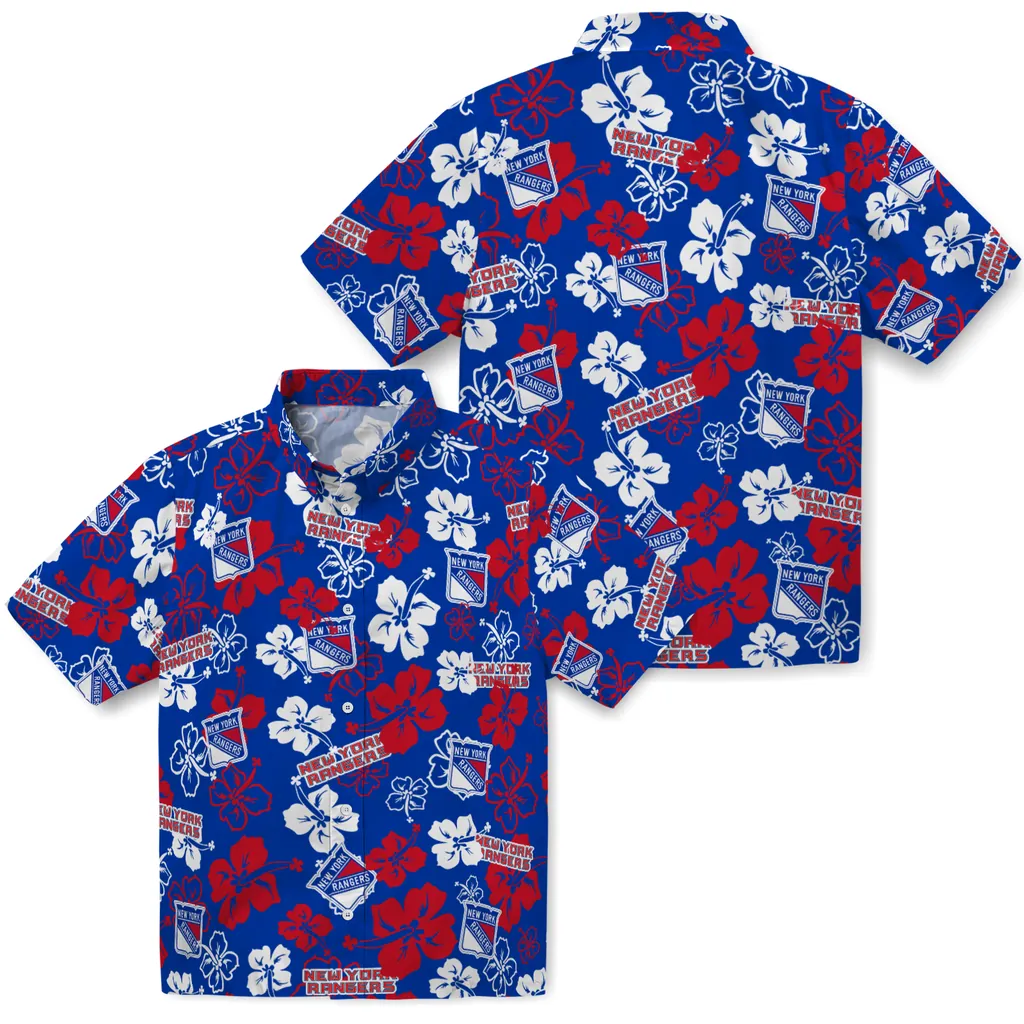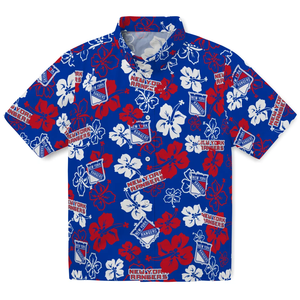 New York Rangers Hawaiian Shirt – Hibiscus Flower Design