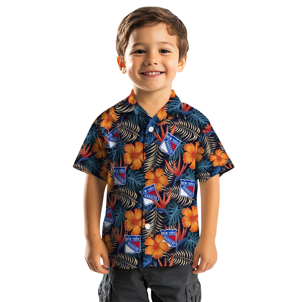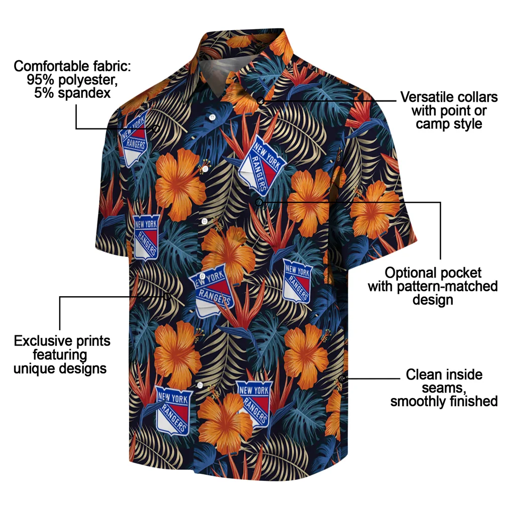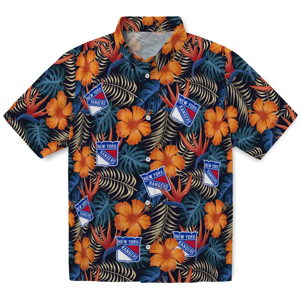New York Rangers Hawaiian Shirt – Hibiscus Foliage