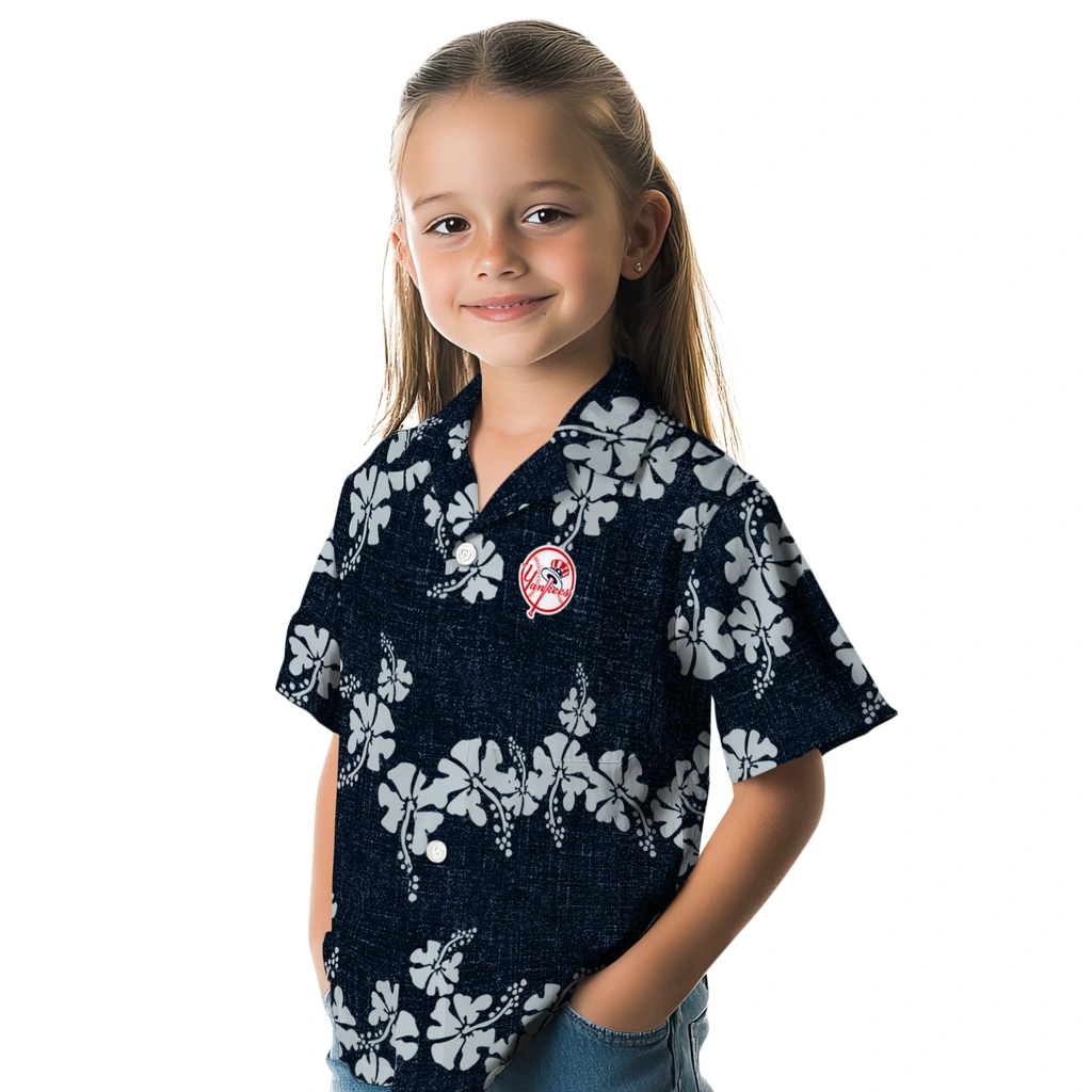 Show your New York Yankees spirit in tropical style. 50th State Flower with team logo on the chest for a tropical and sporty look. Available for men, women and kids. Great for matching looks.