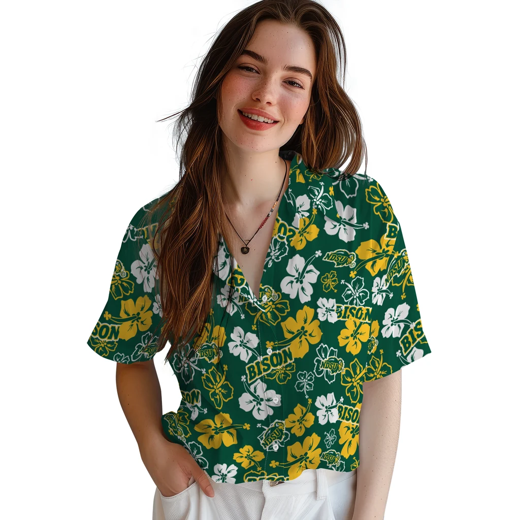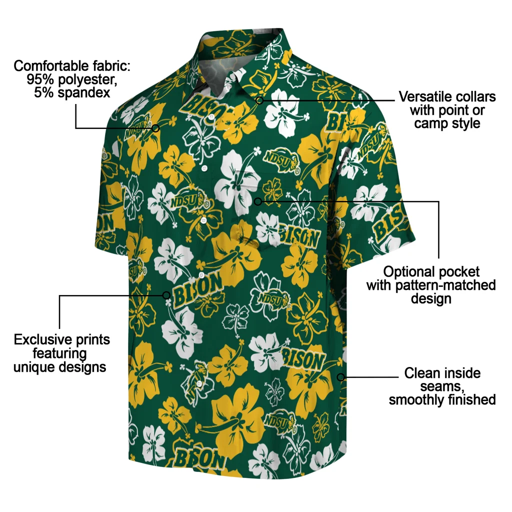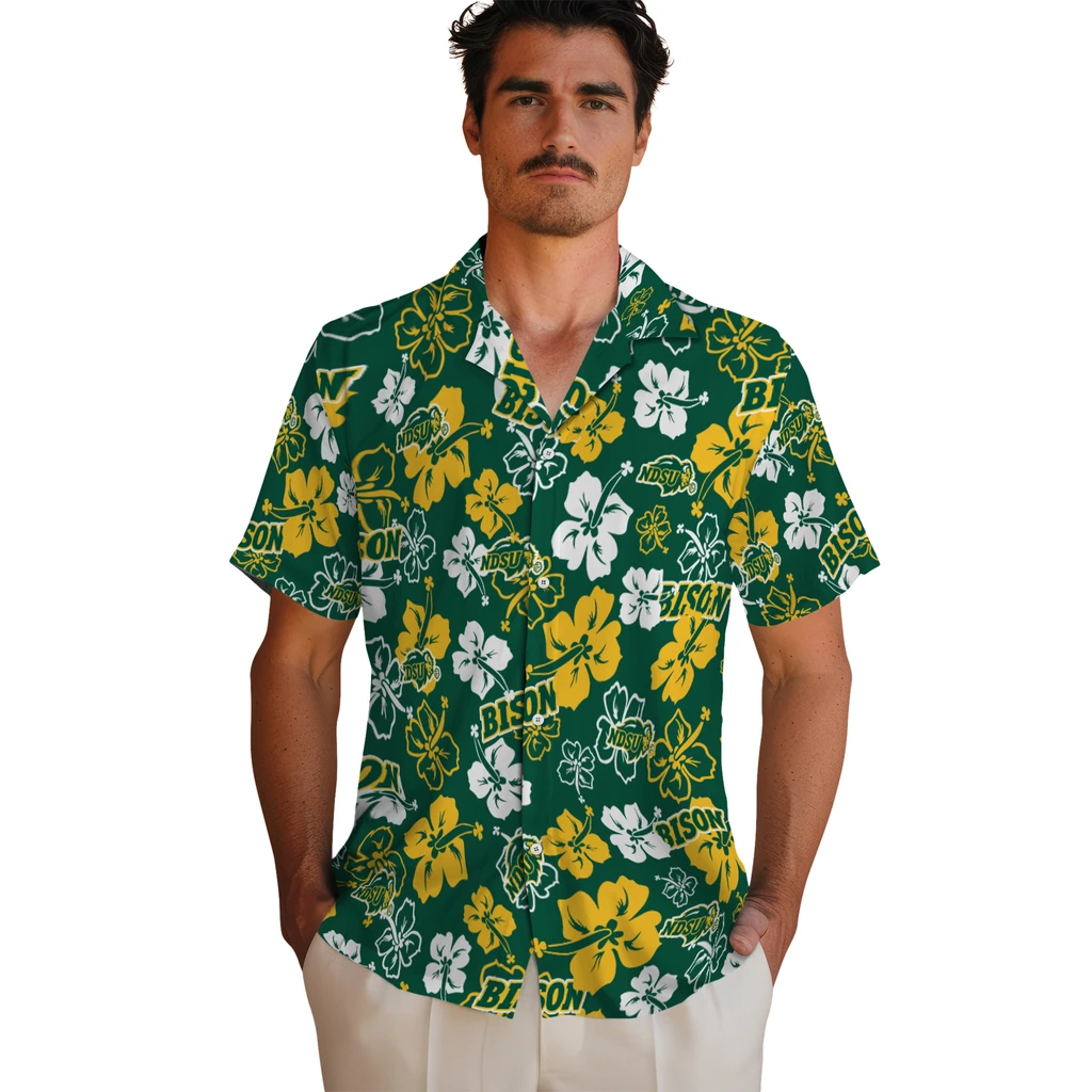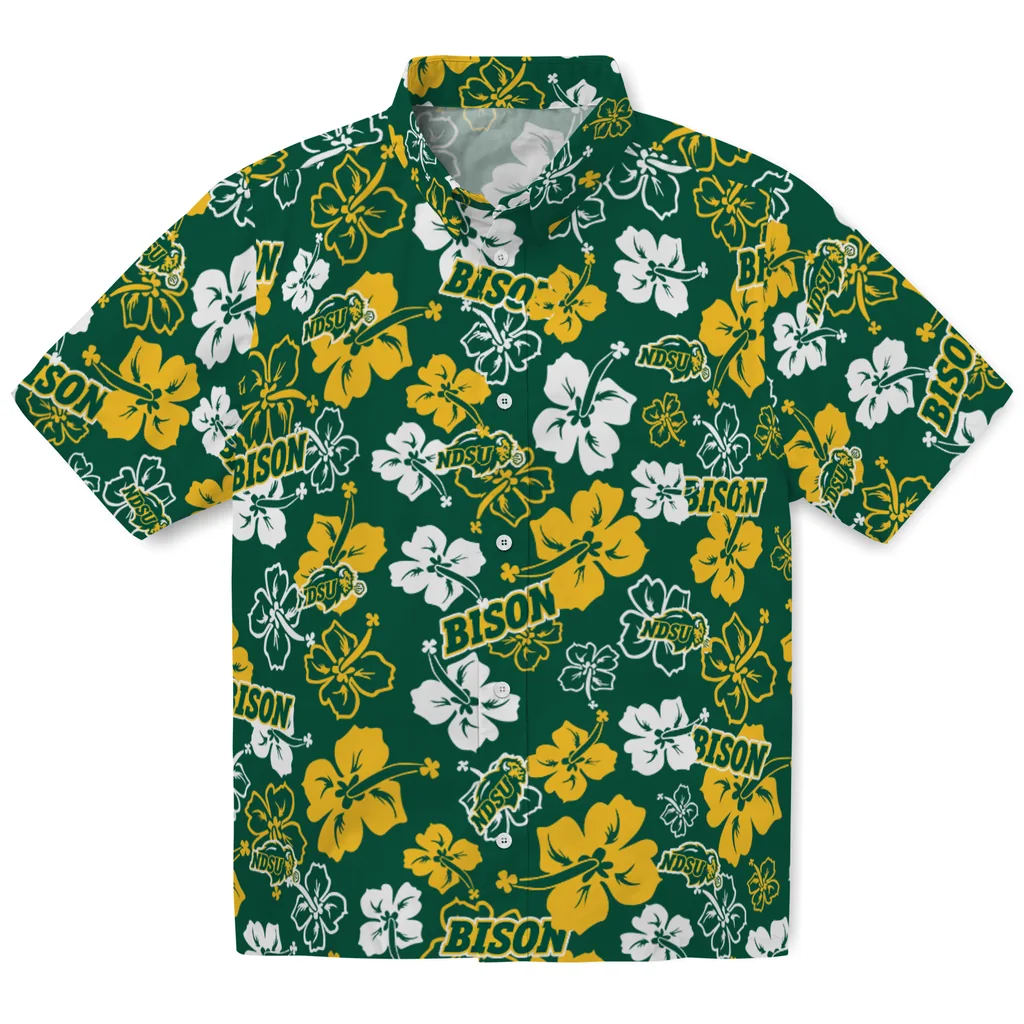 North Dakota State Bison Hawaiian Shirt – Hibiscus Flower Design