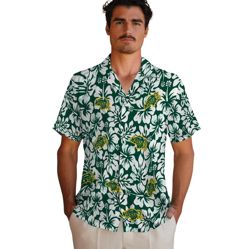 North Dakota State Bison Hawaiian Shirt – Hibiscus Motif