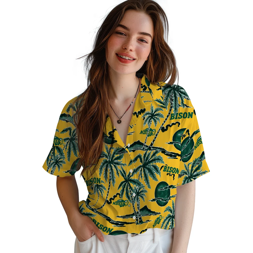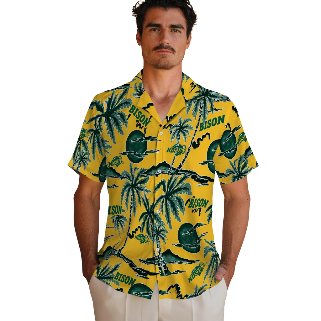 North Dakota State Bison Hawaiian Shirt – Palm Sunset
