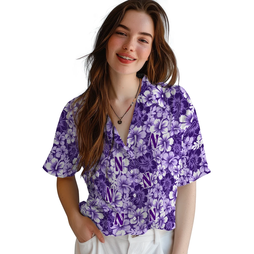 Northwestern Wildcats Hawaiian Shirt – Hibiscus Blooms