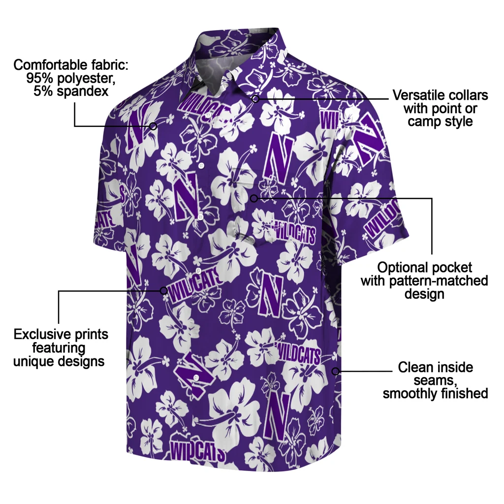 Northwestern Wildcats Hawaiian Shirt – Hibiscus Flower Design