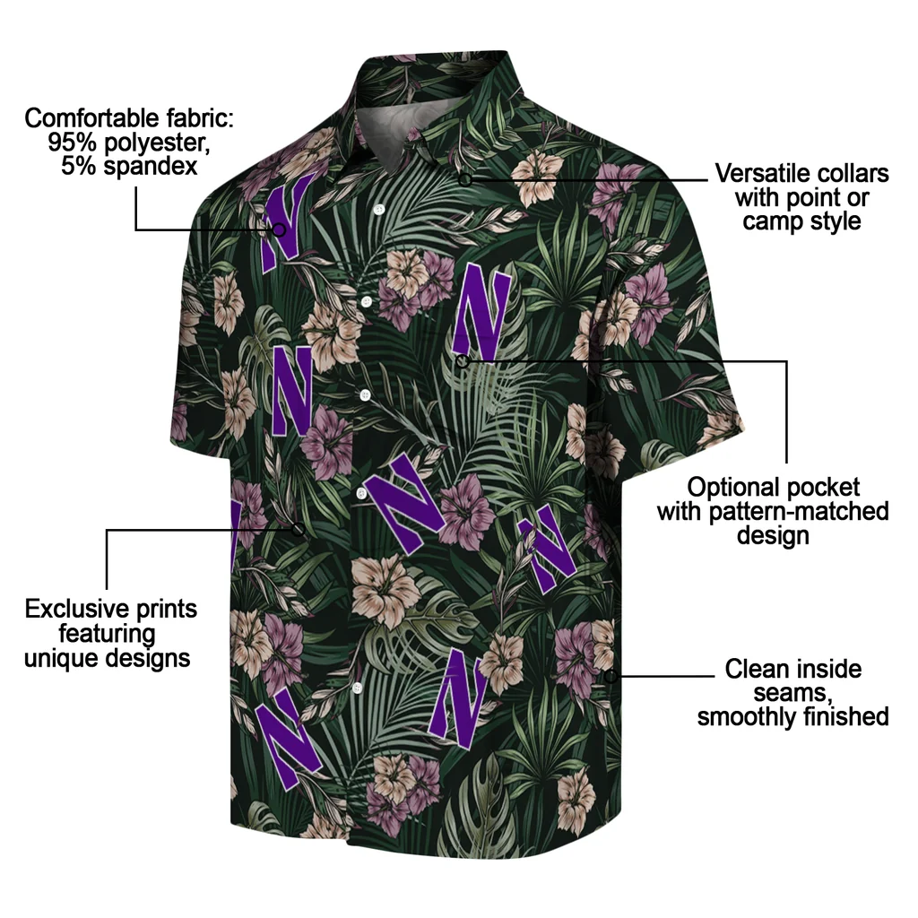 Northwestern Wildcats Hawaiian Shirt – Hibiscus Leaves Pattern