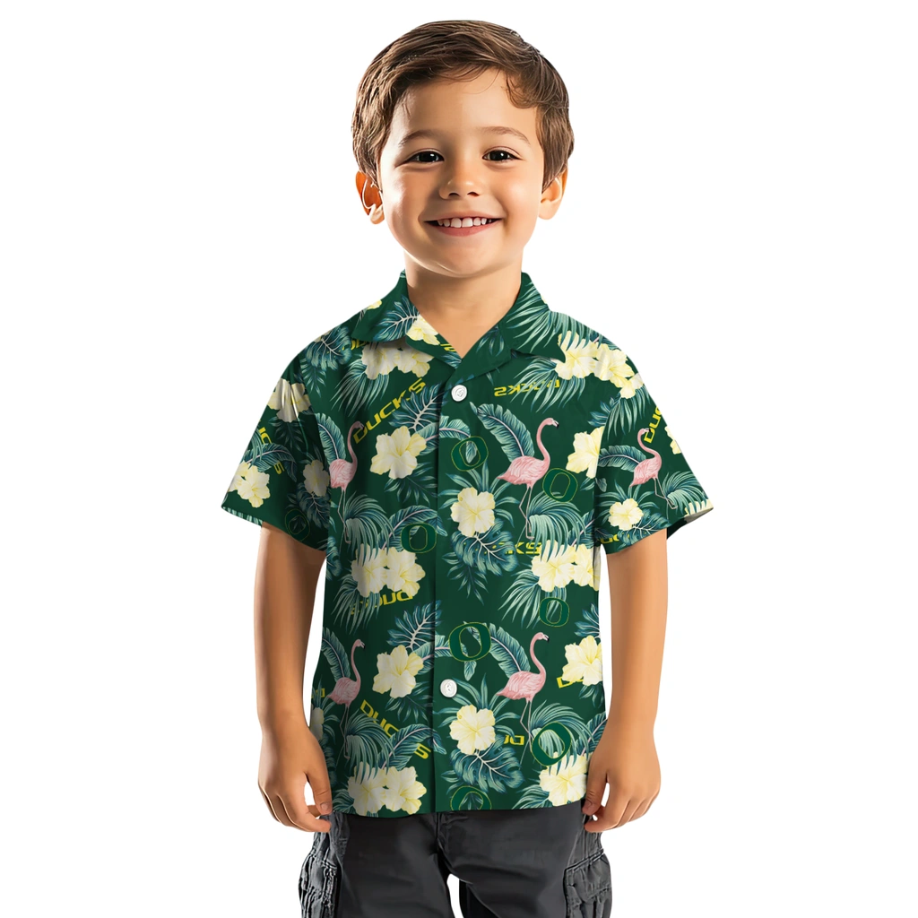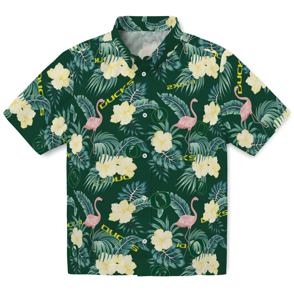Oregon Ducks Hawaiian Shirt – Flamingo and Hibiscus