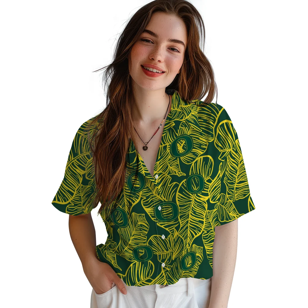 Oregon Ducks Hawaiian Shirt – Leaf Outline