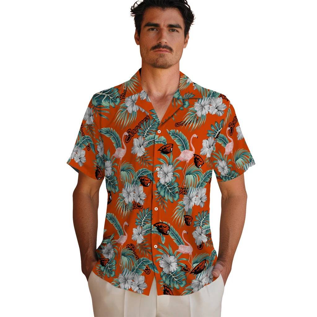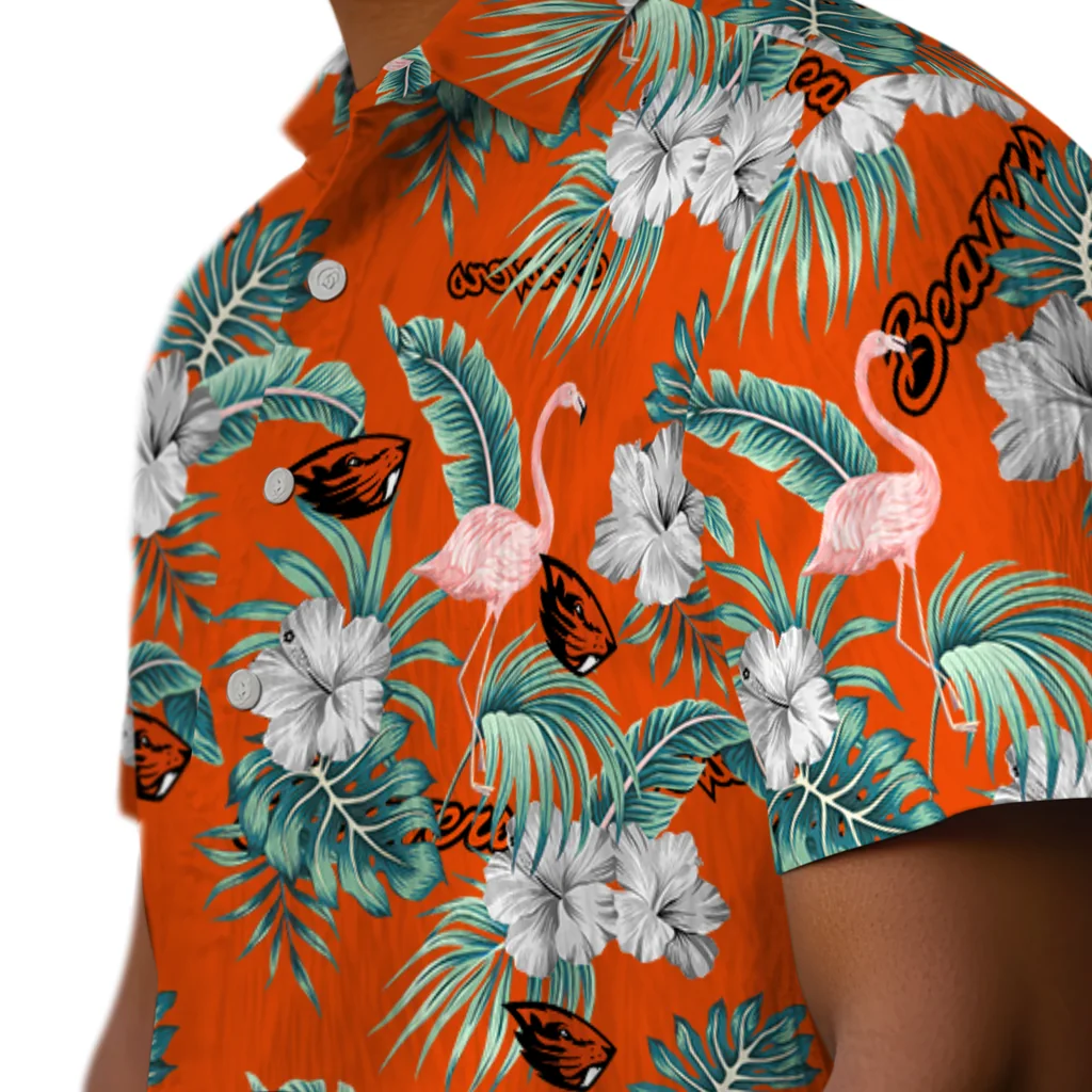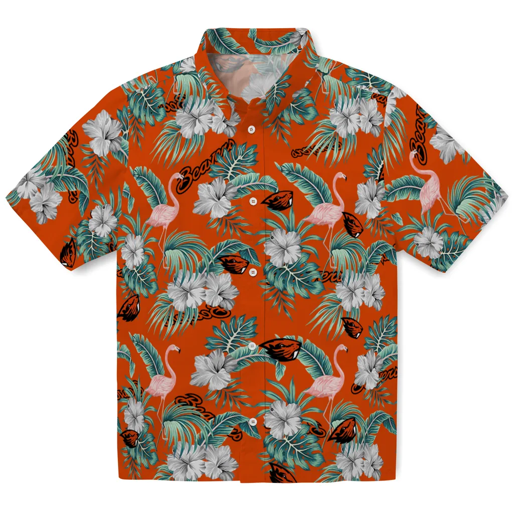 Oregon State Beavers Hawaiian Shirt – Flamingo and Hibiscus
