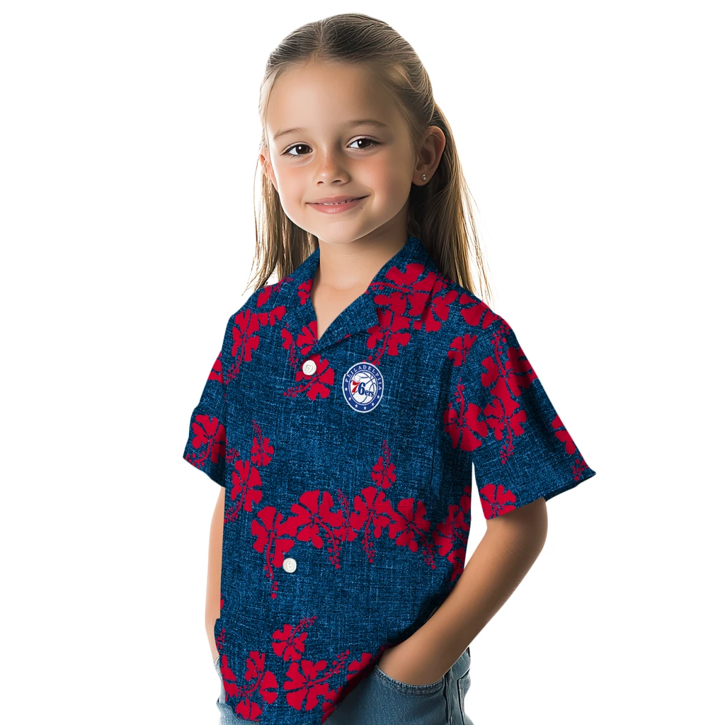 Show your Philadelphia 76ers spirit in tropical style. Hawaii flowers accented with team logo for a classic tropical look. Available for men, women and kids. Great for matching looks.
