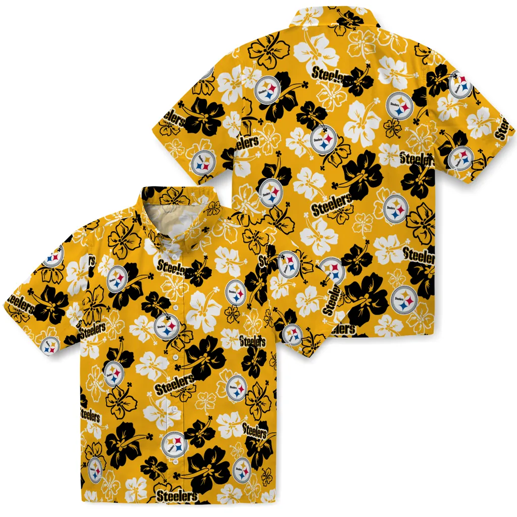 Pittsburgh Steelers Hawaiian Shirt – Hibiscus Flower Design