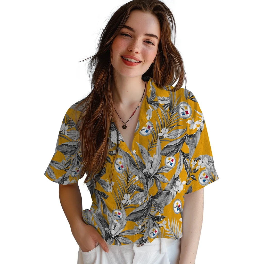 Pittsburgh Steelers Hawaiian Shirt – Palm Leaves