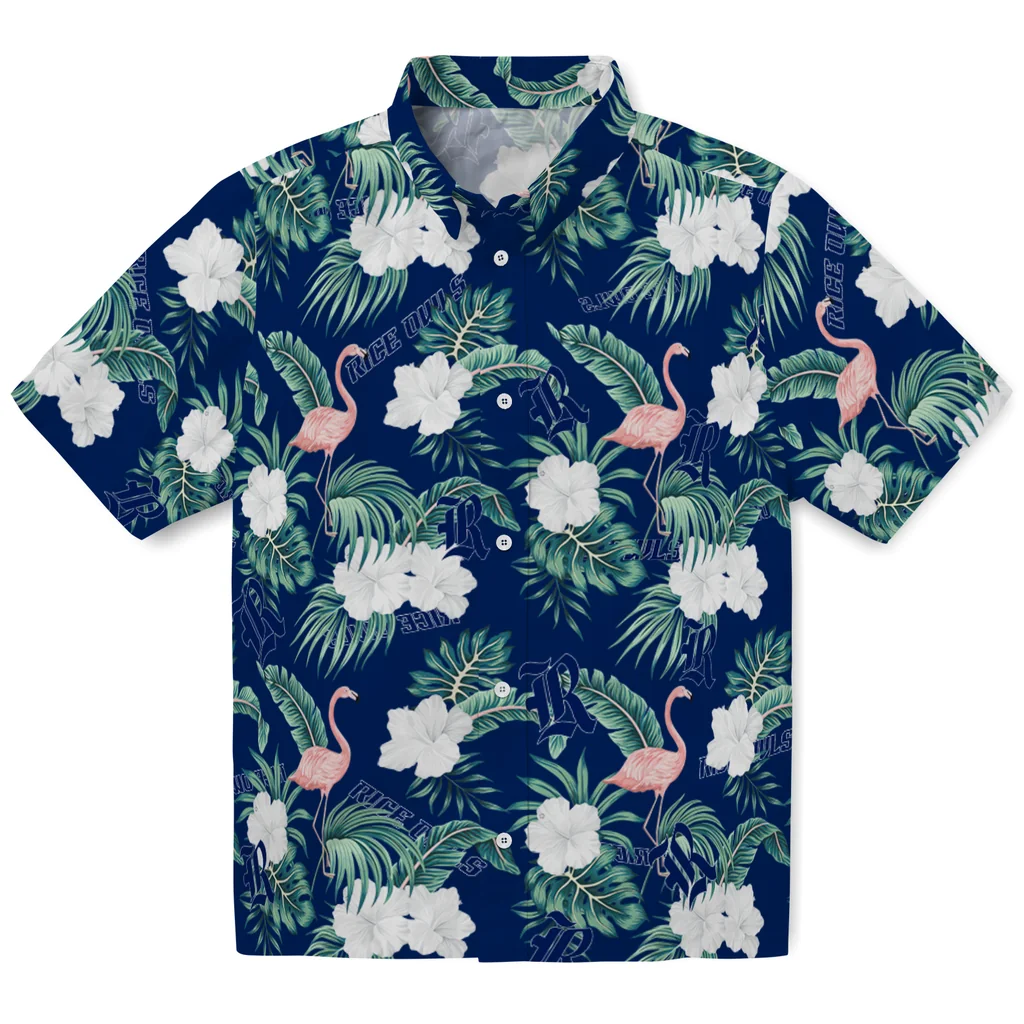 Rice Owls Hawaiian Shirt – Flamingo and Hibiscus