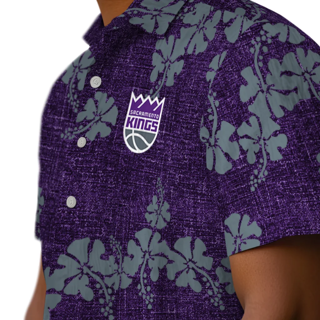 Show your Sacramento Kings spirit in tropical style. Tropical leaves and anthurium accented with team logo for a vibrant Hawaiian shirt. Available for men, women and kids. Great for matching looks.