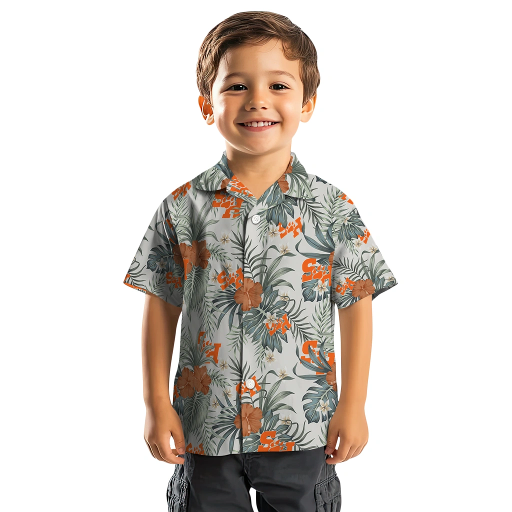 Show your Sam Houston Bearkats spirit in tropical style. Bouquets of hibiscus, tropical leaves, and plumeria accented with team logo. Available for men, women and kids. Great for matching looks.