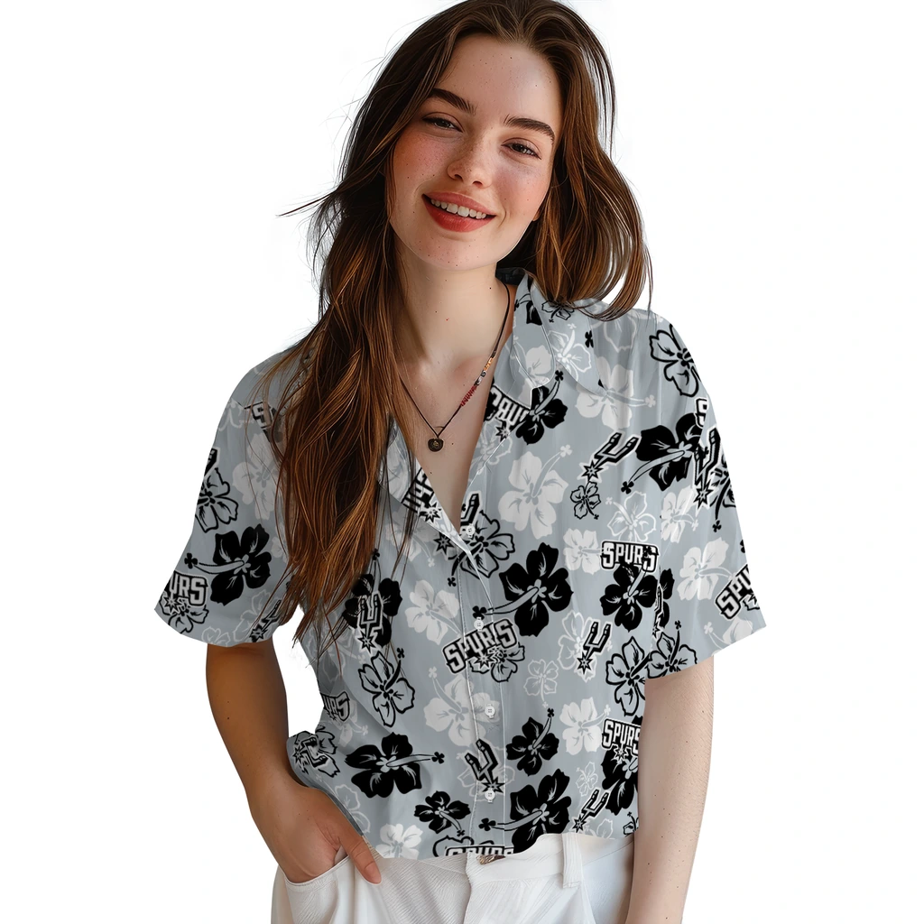 San Antonio Spurs Hawaiian Shirt – Hibiscus Flower Design