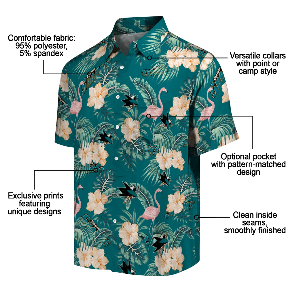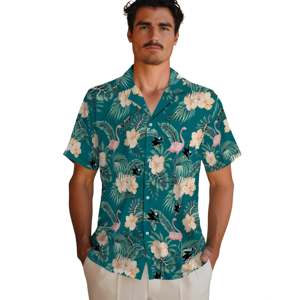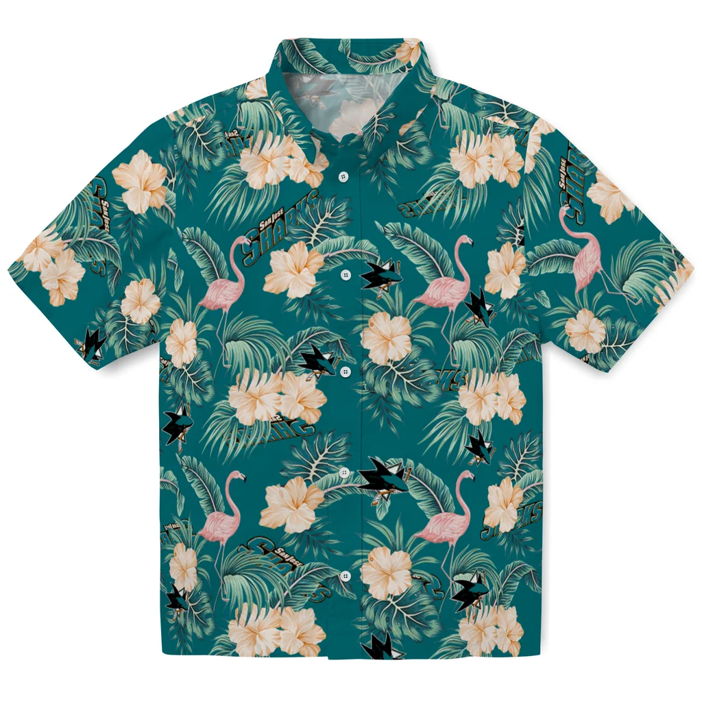 San Jose Sharks Hawaiian Shirt – Flamingo and Hibiscus