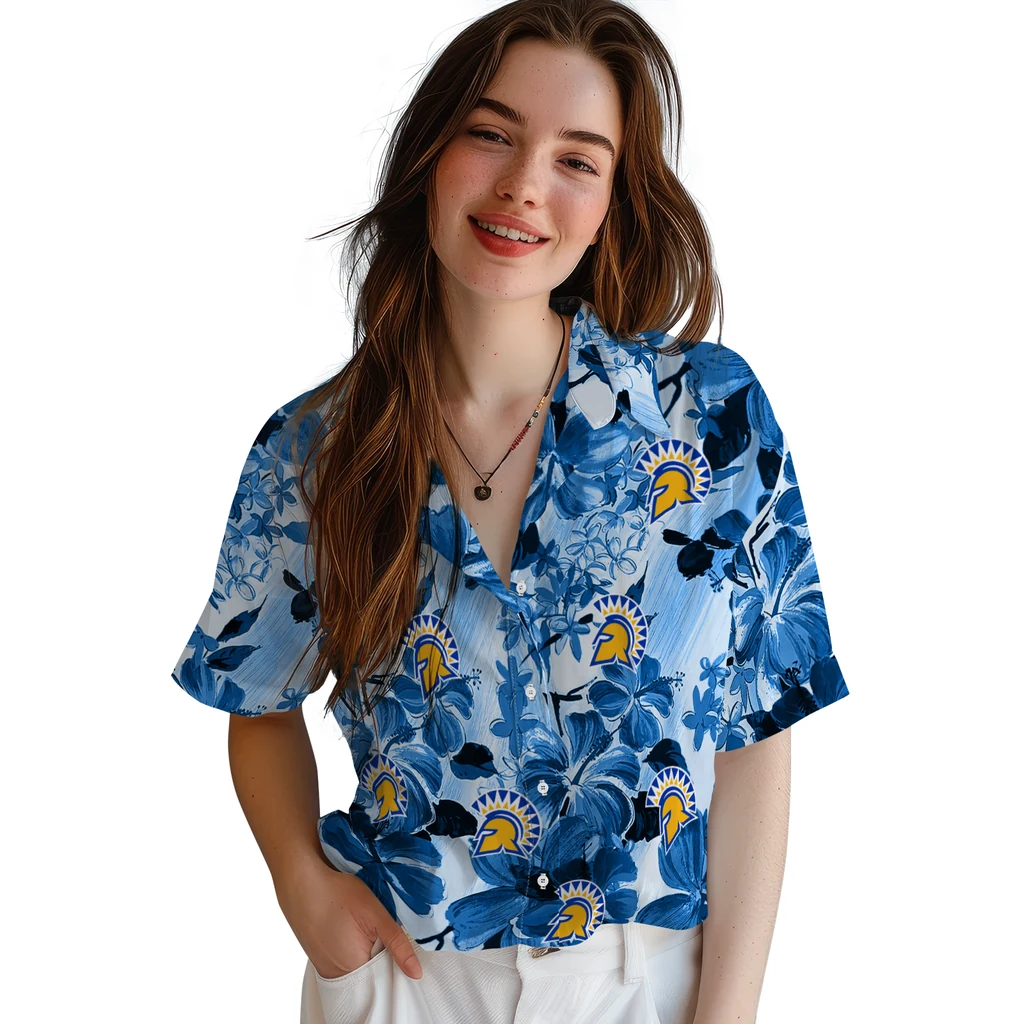San Jose State Spartans Hawaiian Shirt – Hibiscus Arrangement