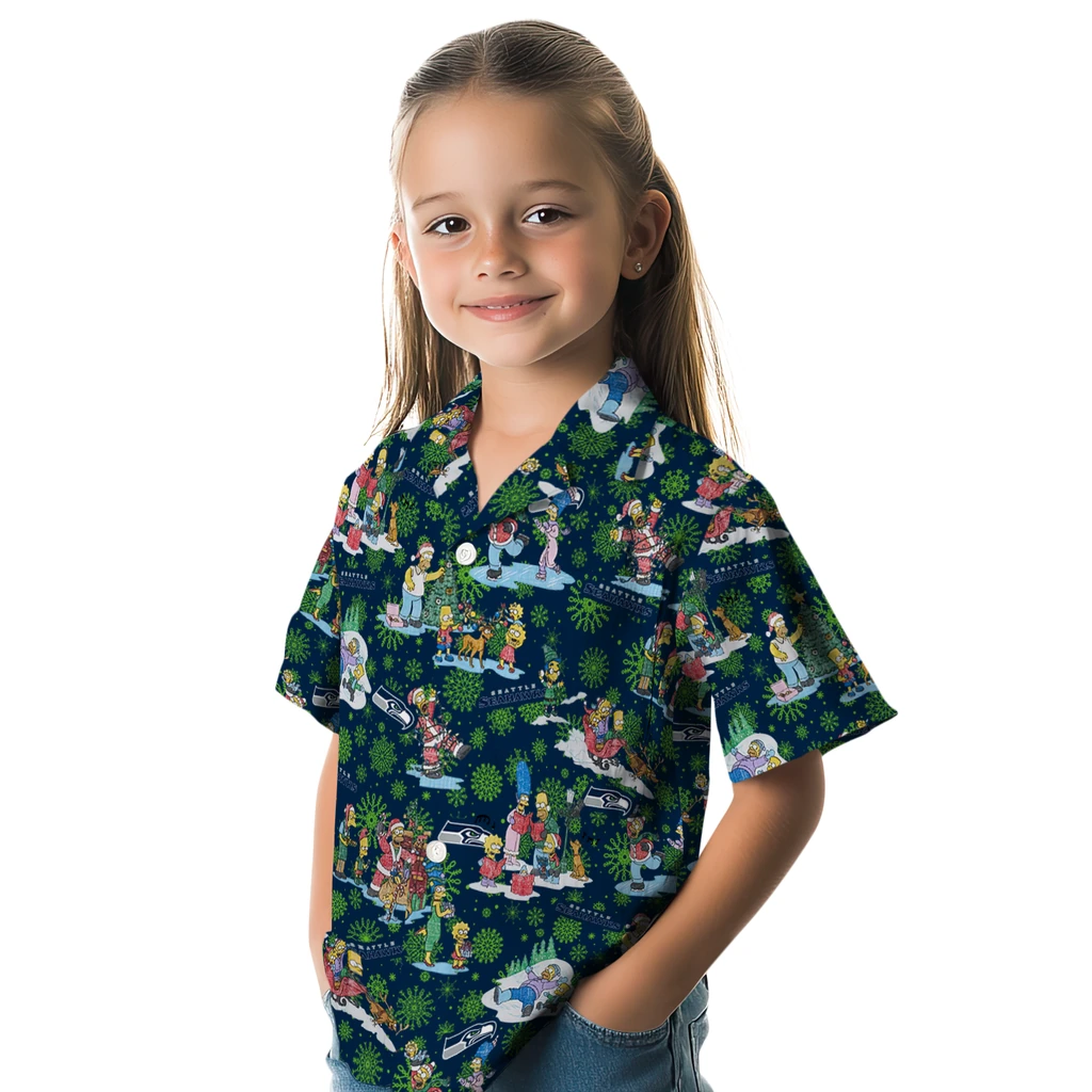 Show your Seattle Seahawks spirit in tropical style. Simpsons Christmas cartoon characters with team logo for a festive Hawaiian style. Available for men, women and kids. Great for matching looks.