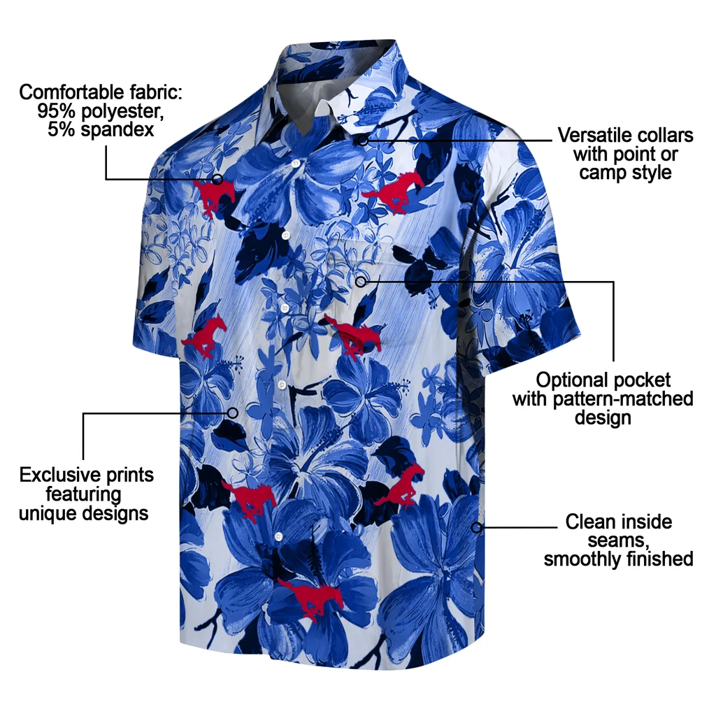 SMU Mustangs Hawaiian Shirt – Hibiscus Arrangement