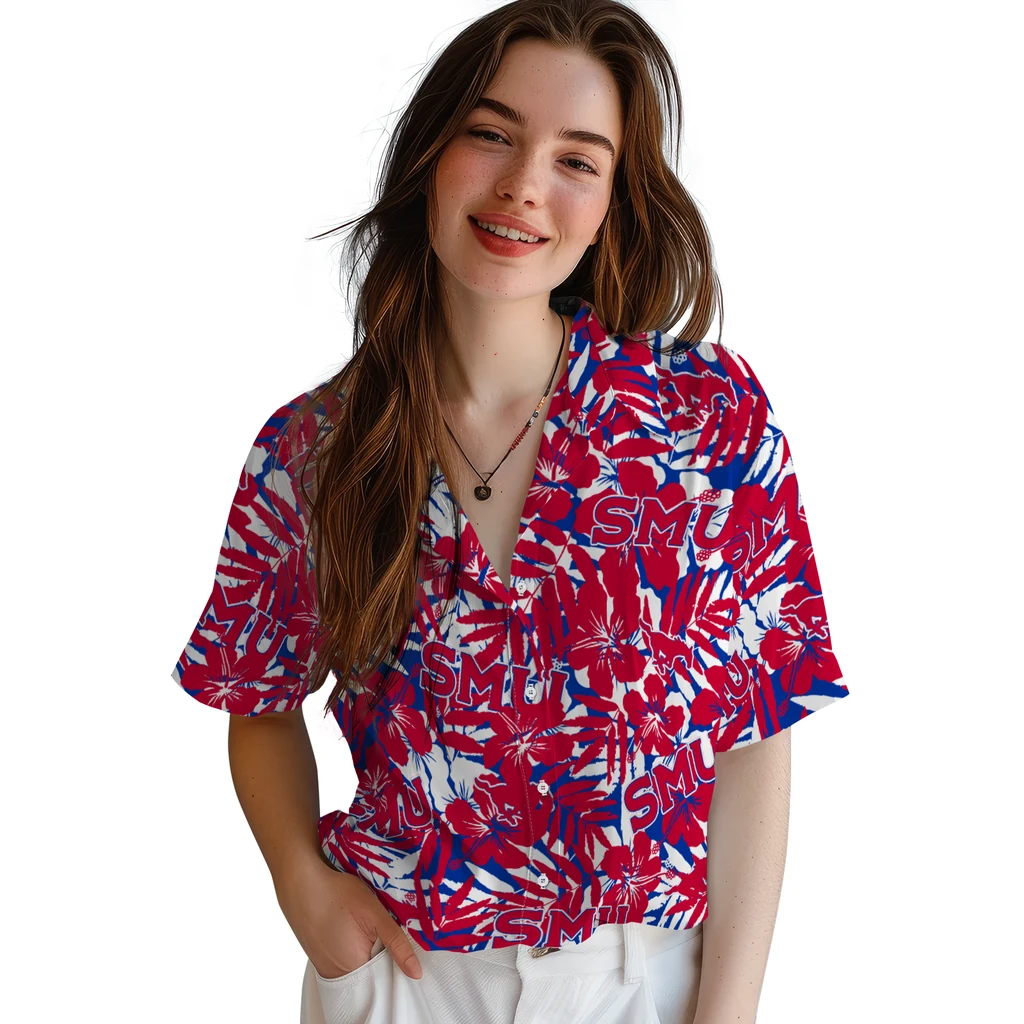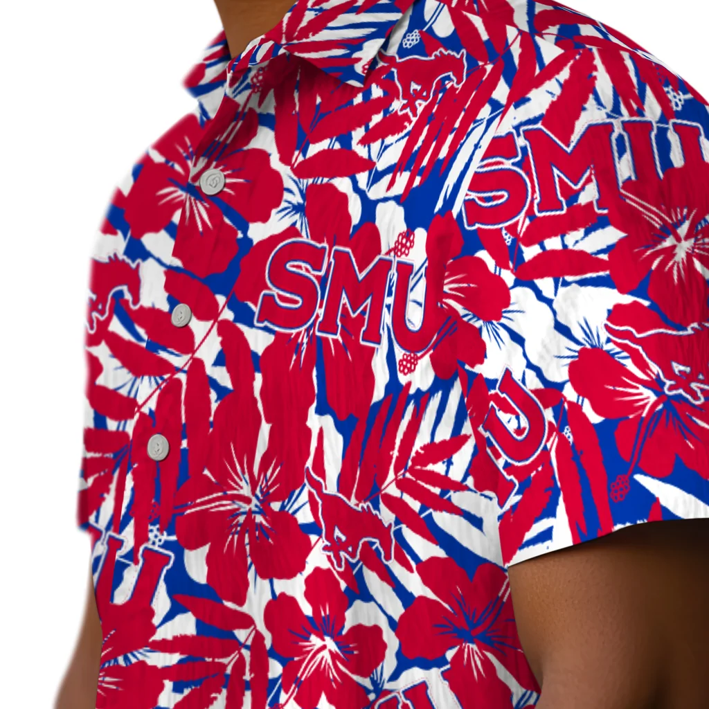 SMU Mustangs Hawaiian Shirt – Hibiscus Overlay