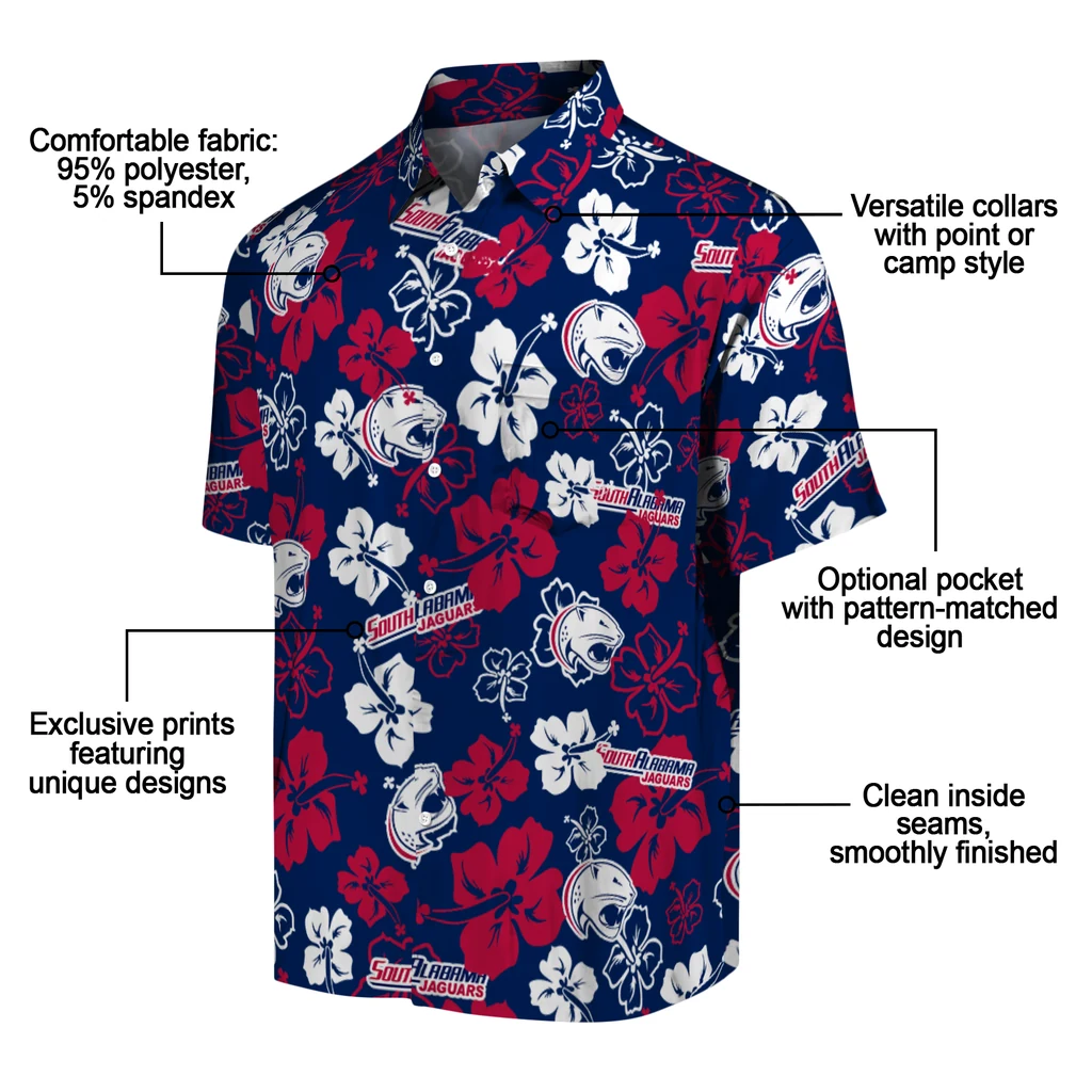South Alabama Jaguars Hawaiian Shirt – Hibiscus Flower Design