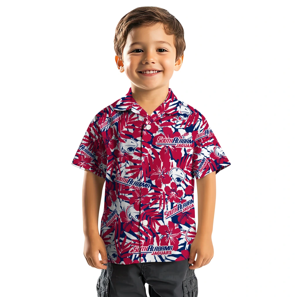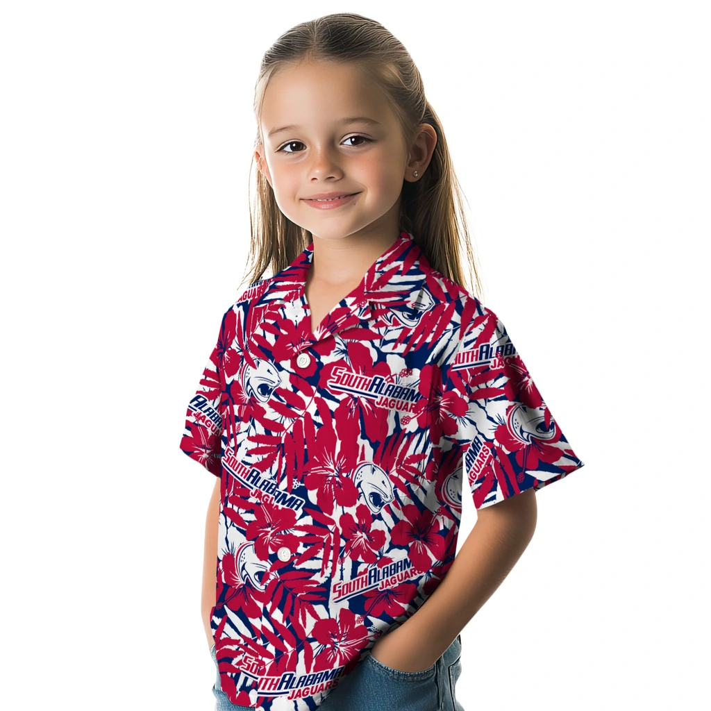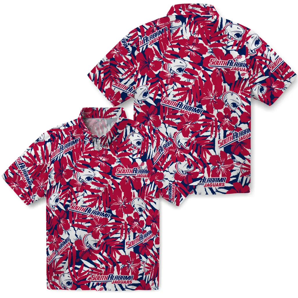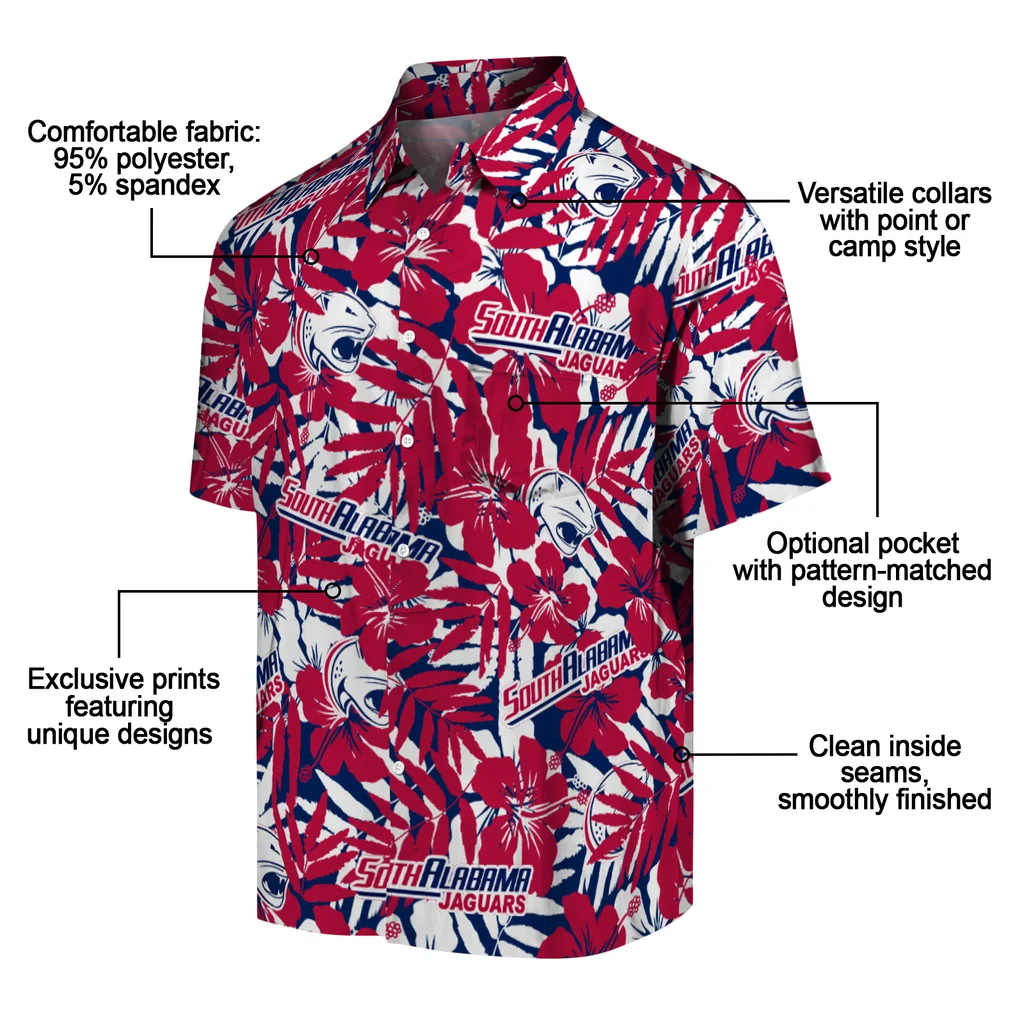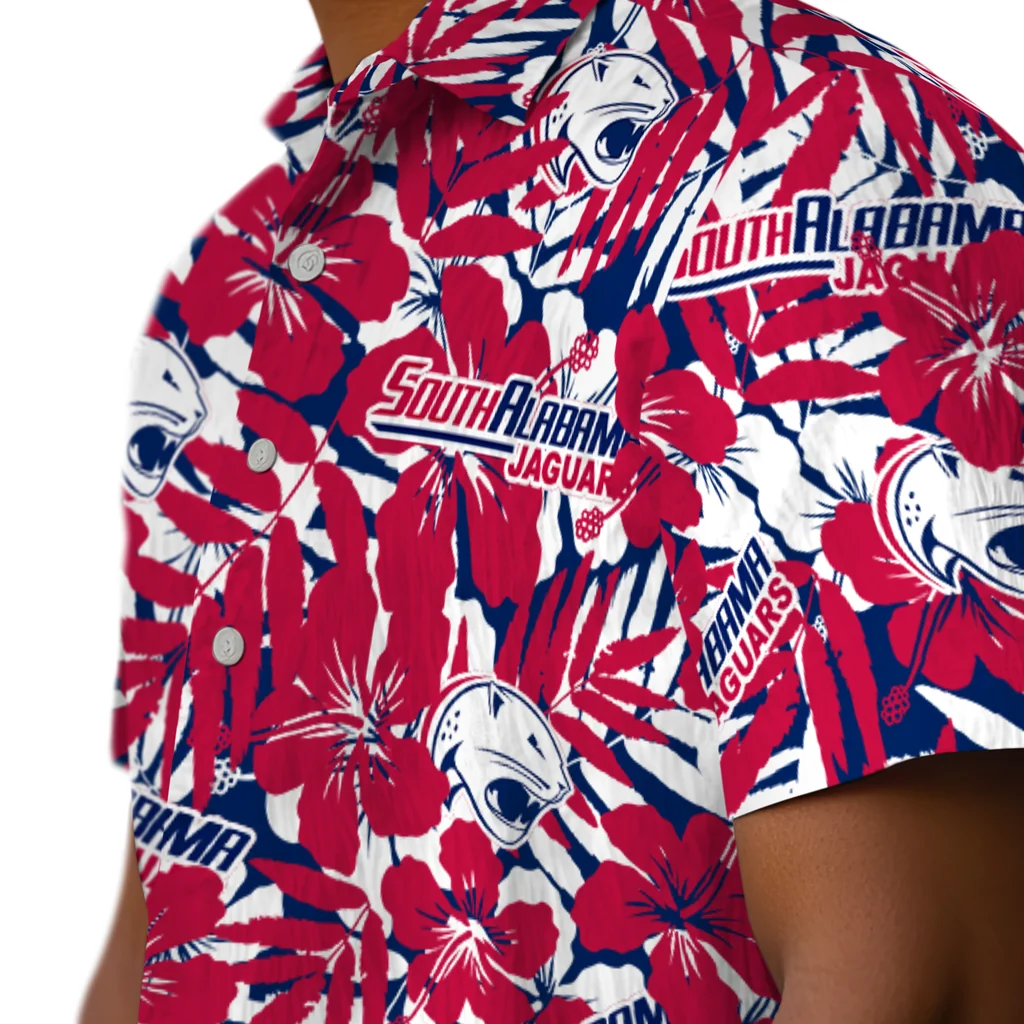 South Alabama Jaguars Hawaiian Shirt – Hibiscus Overlay