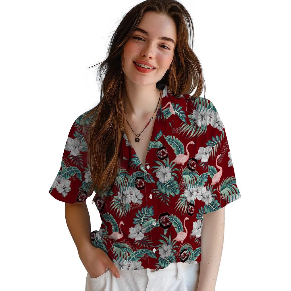 South Carolina Gamecocks Hawaiian Shirt – Flamingo and Hibiscus