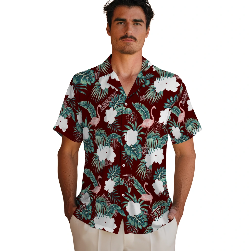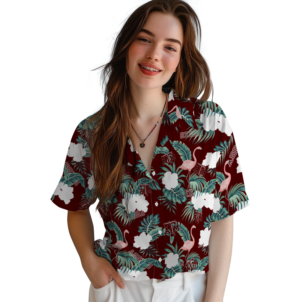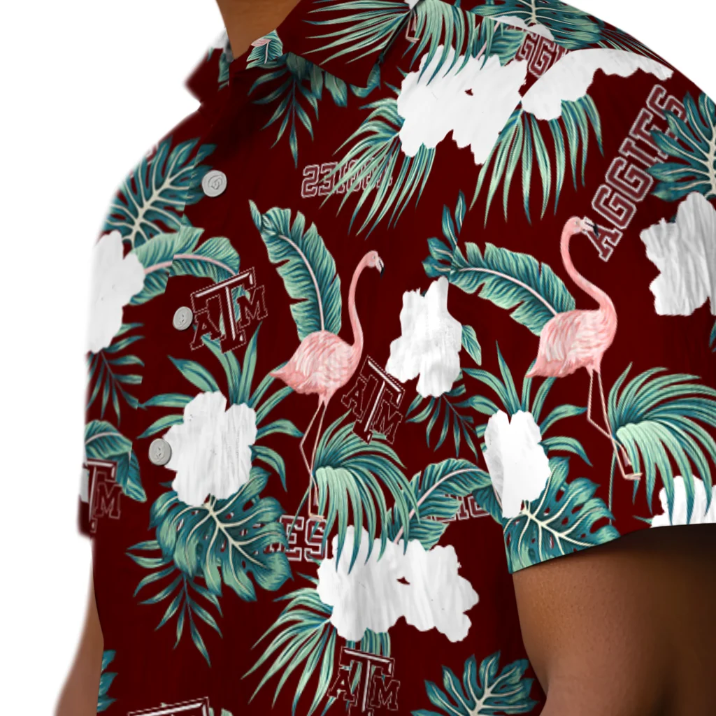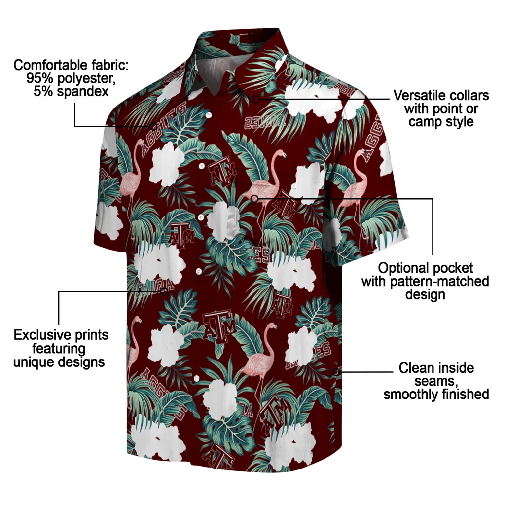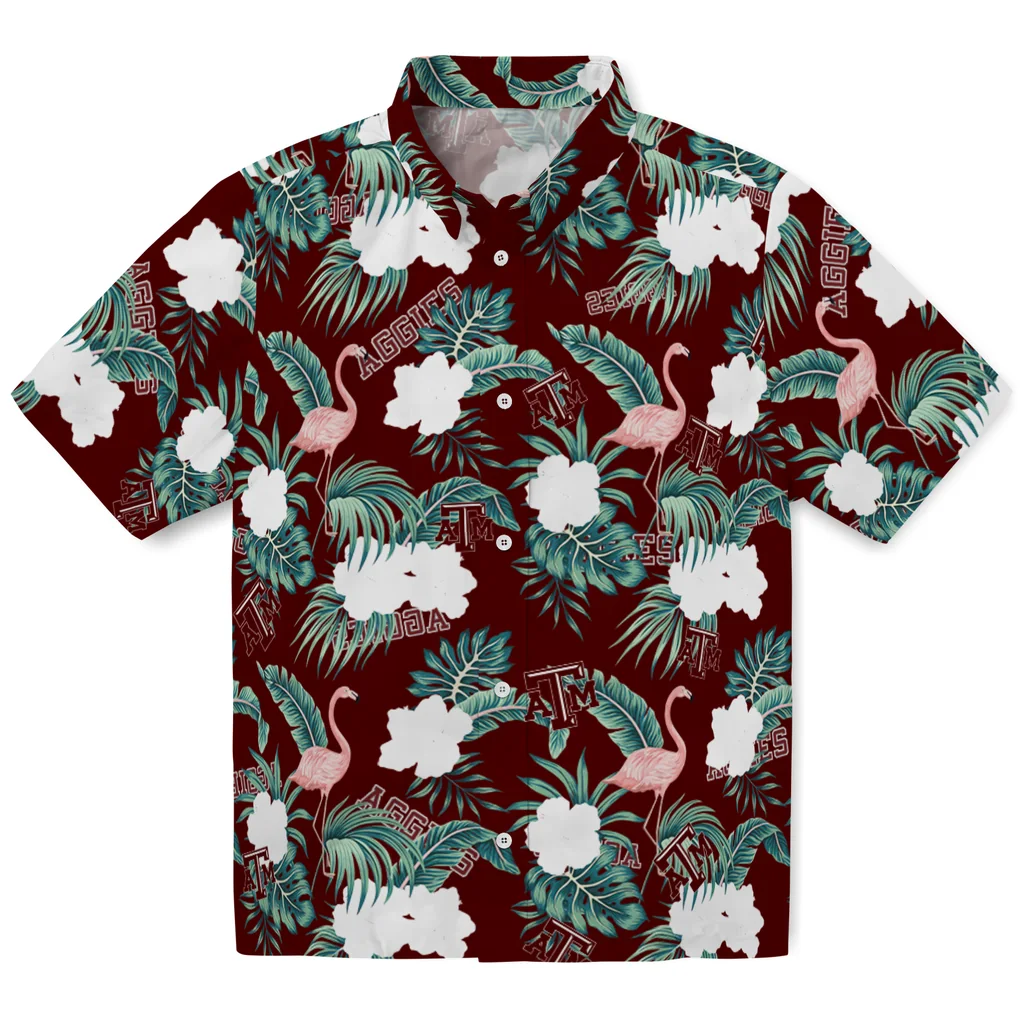 Texas A&M Aggies Hawaiian Shirt – Flamingo and Hibiscus