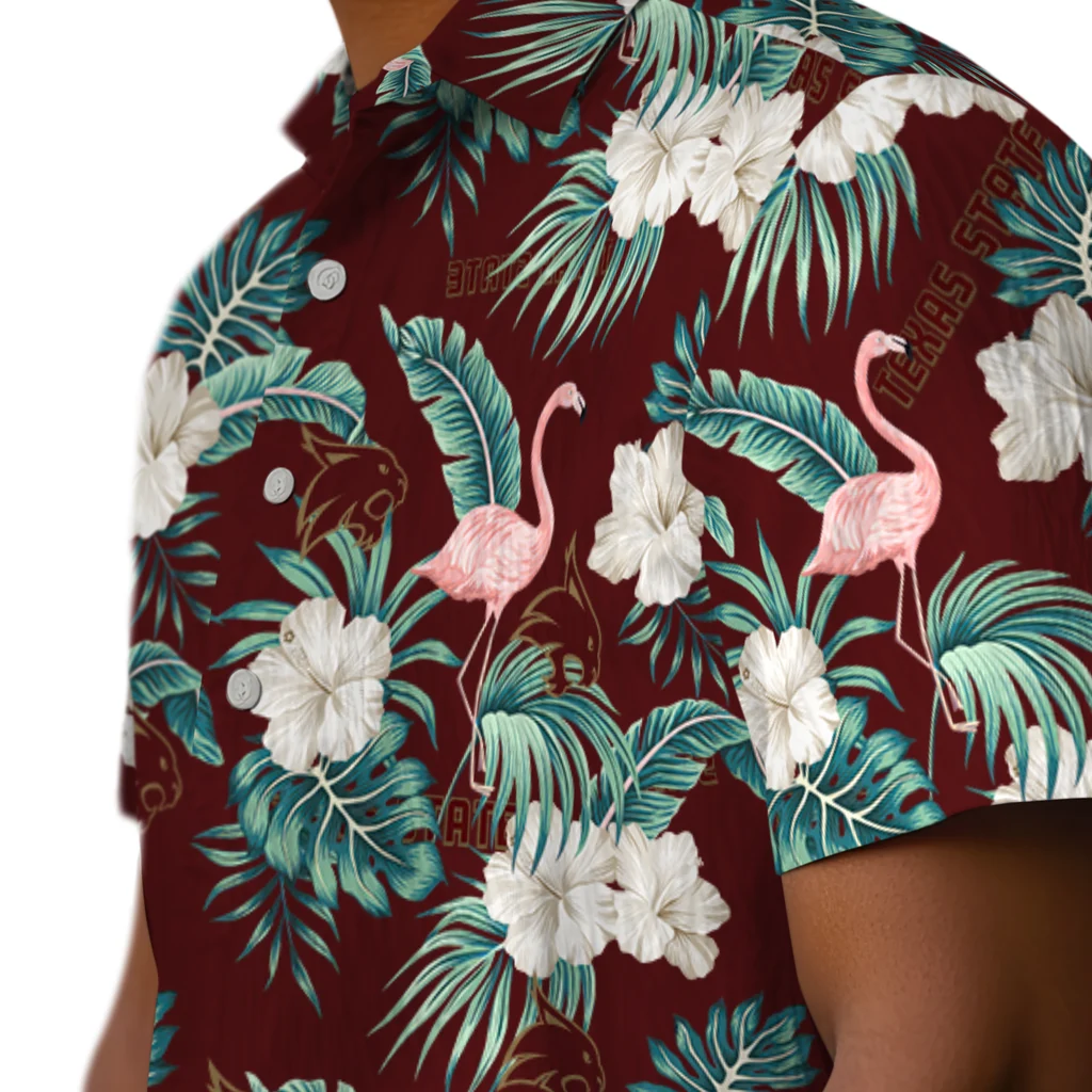 Texas State Bobcats Hawaiian Shirt – Flamingo and Hibiscus
