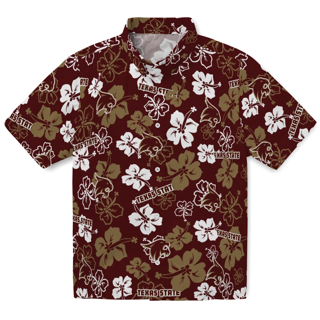 Texas State Bobcats Hawaiian Shirt – Hibiscus Flower Design