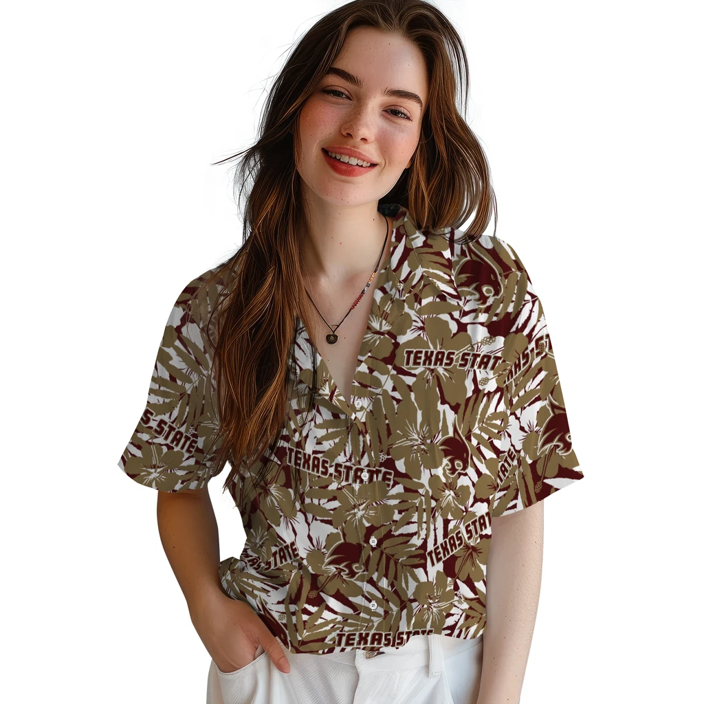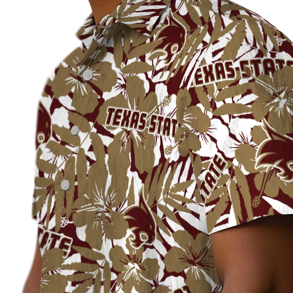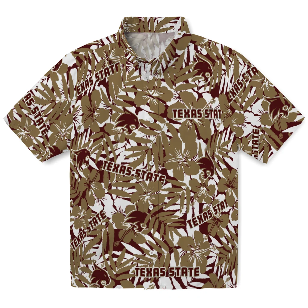 Texas State Bobcats Hawaiian Shirt – Hibiscus Overlay