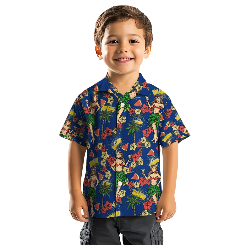 Show your Toledo Rockets spirit in tropical style. Colorful Hula girls illustration with tropical motifs and team logo for a playful design. Available for men, women and kids. Great for matching looks.
