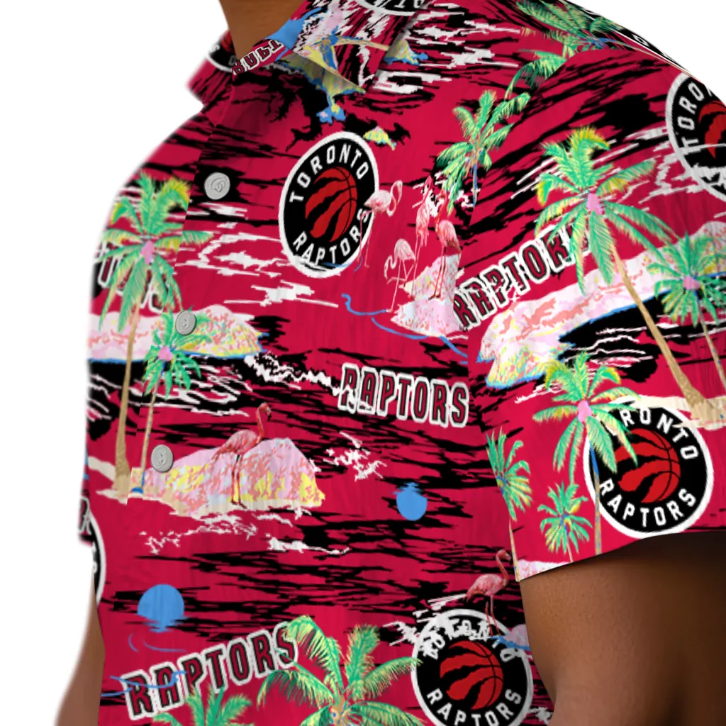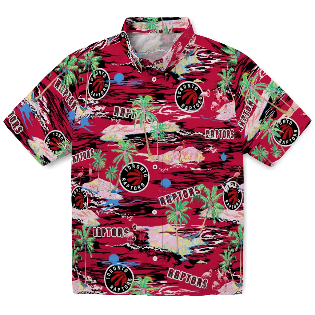 Show your Toronto Raptors spirit in tropical style. Beach island scenes with flamingos and team logo for a summer-ready Hawaiian shirt. Available for men, women and kids. Great for matching looks.