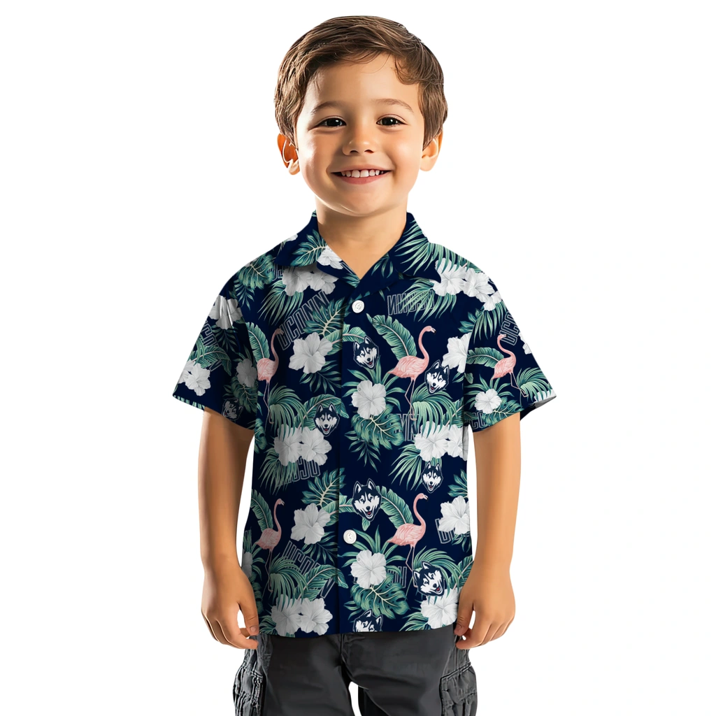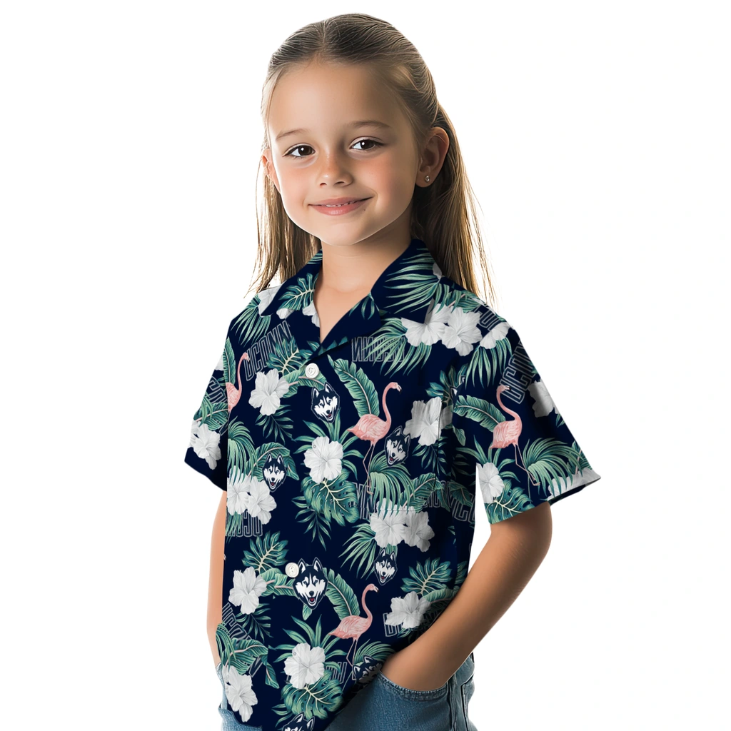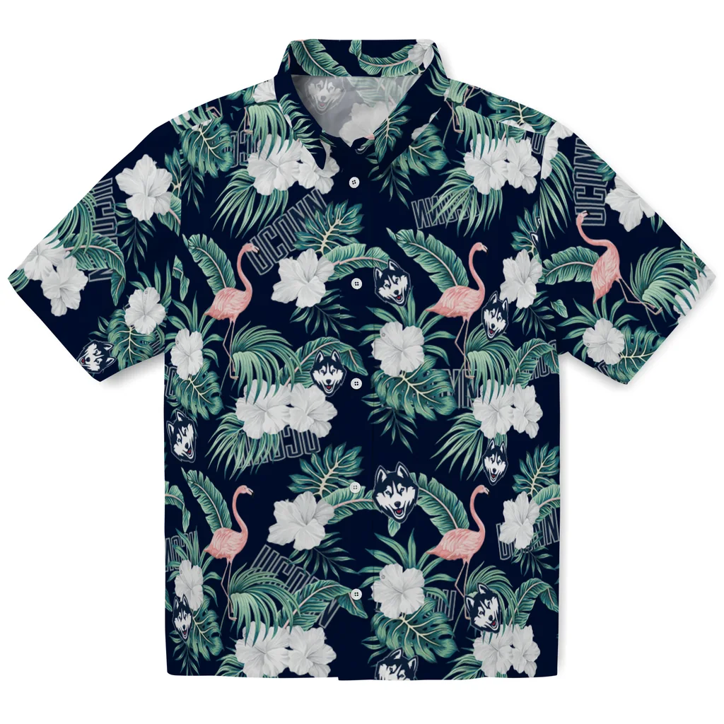 UConn Huskies Hawaiian Shirt – Flamingo and Hibiscus