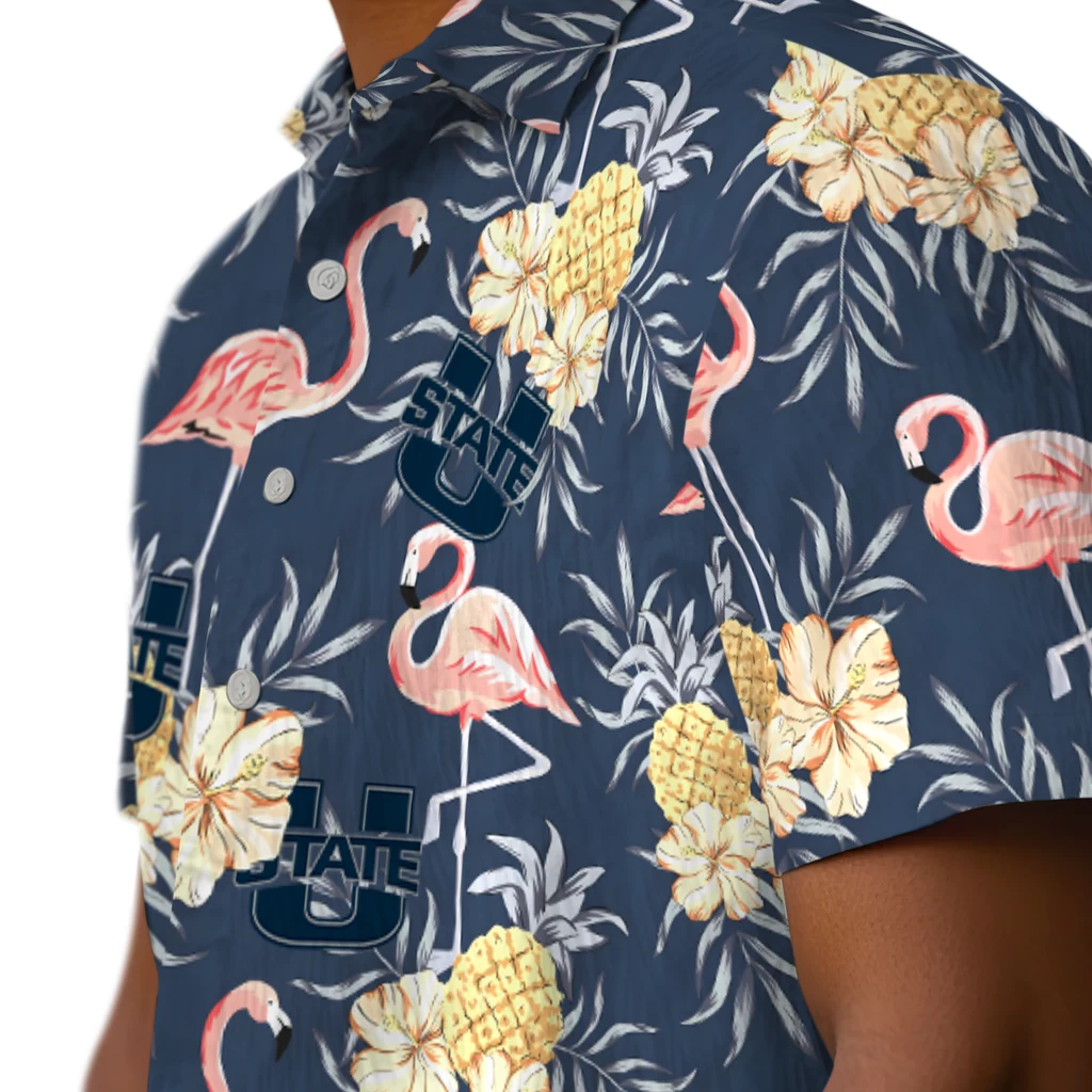 Utah State Aggies Hawaiian Shirt – Flamingo Hibiscus