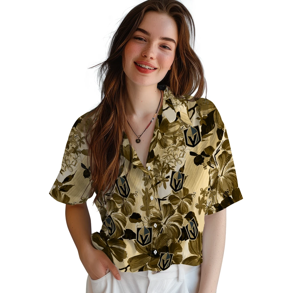 Vegas Golden Knights Hawaiian Shirt – Hibiscus Arrangement