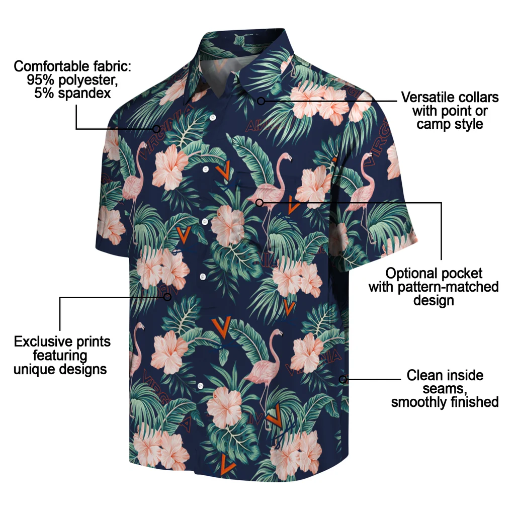 Virginia Cavaliers Hawaiian Shirt – Flamingo and Hibiscus