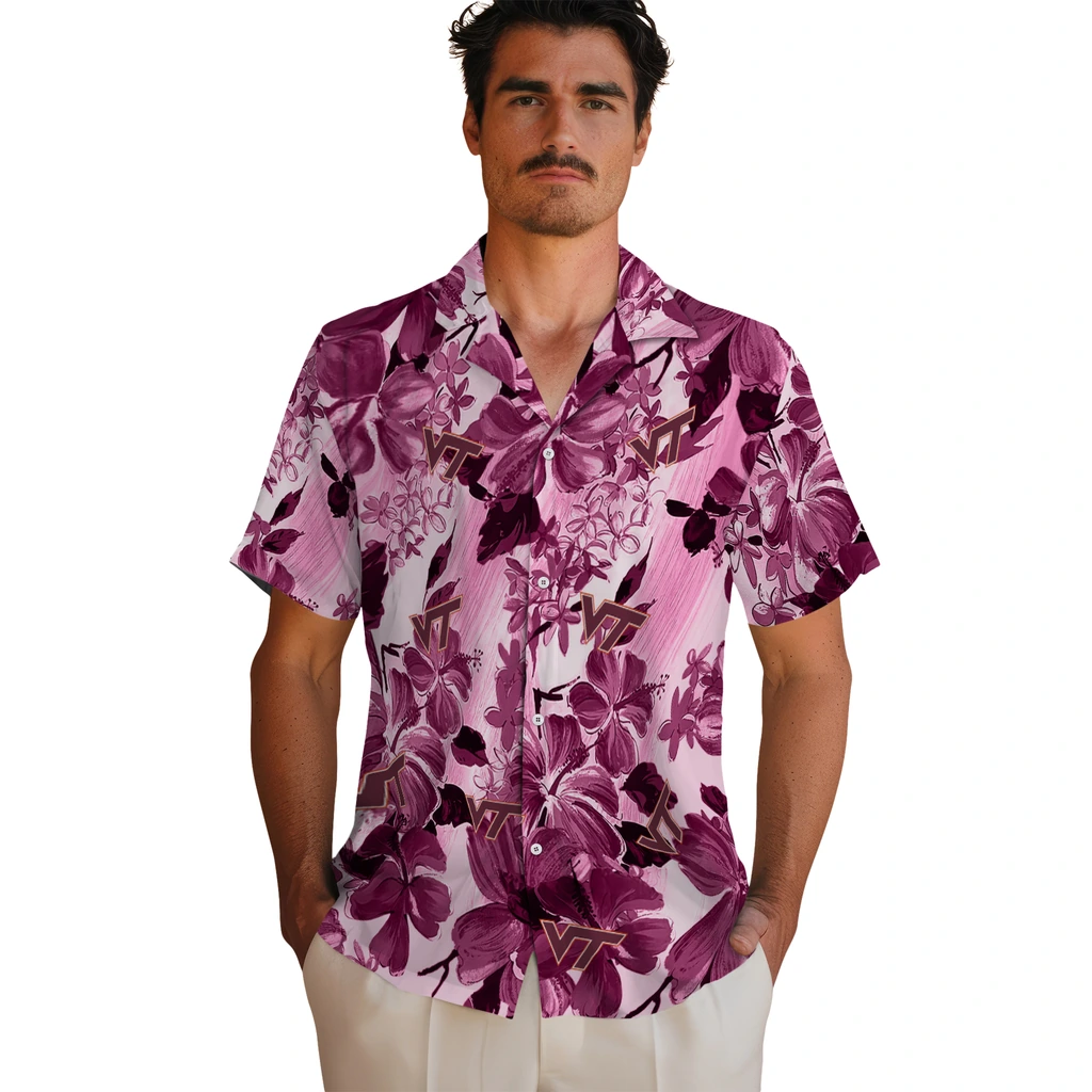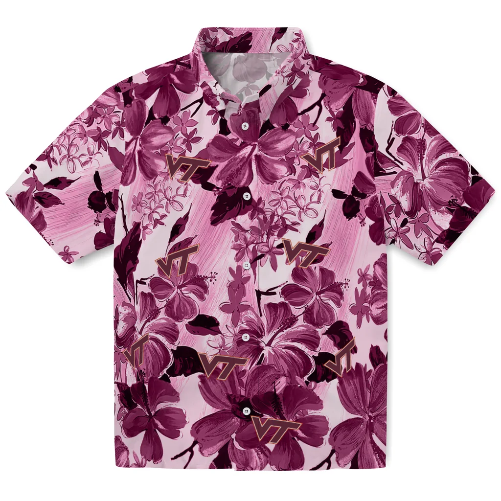 Virginia Tech Hokies Hawaiian Shirt – Hibiscus Arrangement