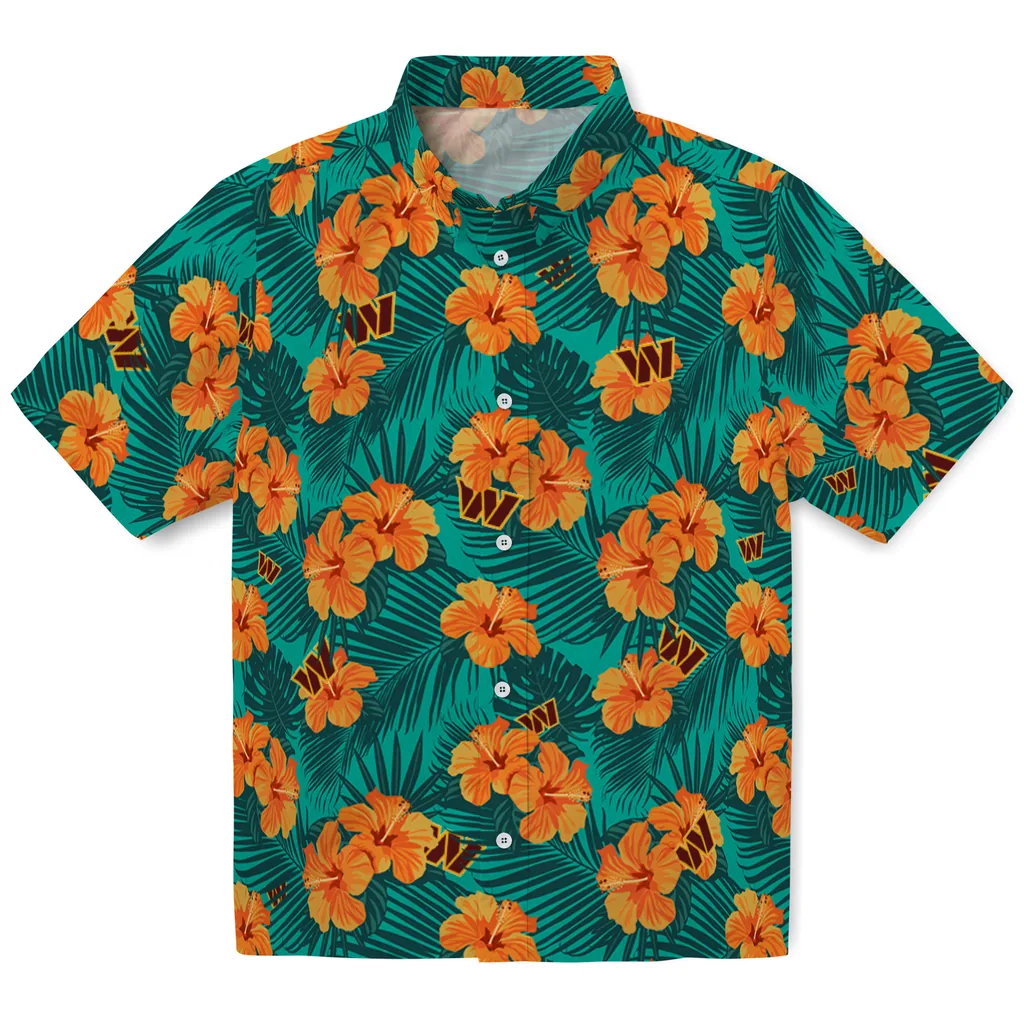 Washington Commanders Hawaiian Shirt – Hibiscus and Palm Leaves